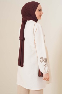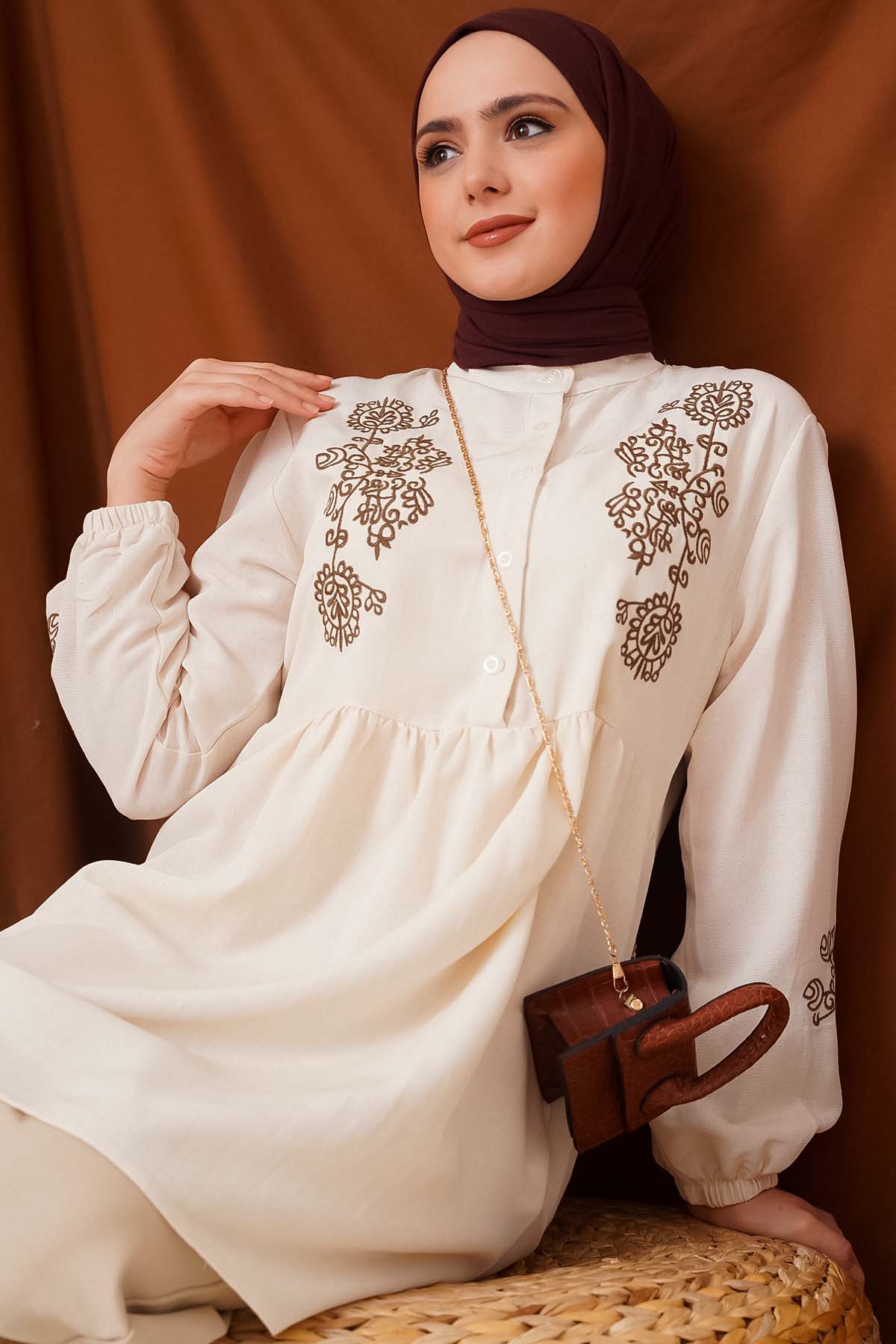 Yeni sezon model tuniğimiz harika kumaşıyla tam yazlıktır. Tuniğimiz hakim yaka olup önü düğmelidir. Nakış motifleriyle süslenen tuniğimizin bilekleri lastiklidir.