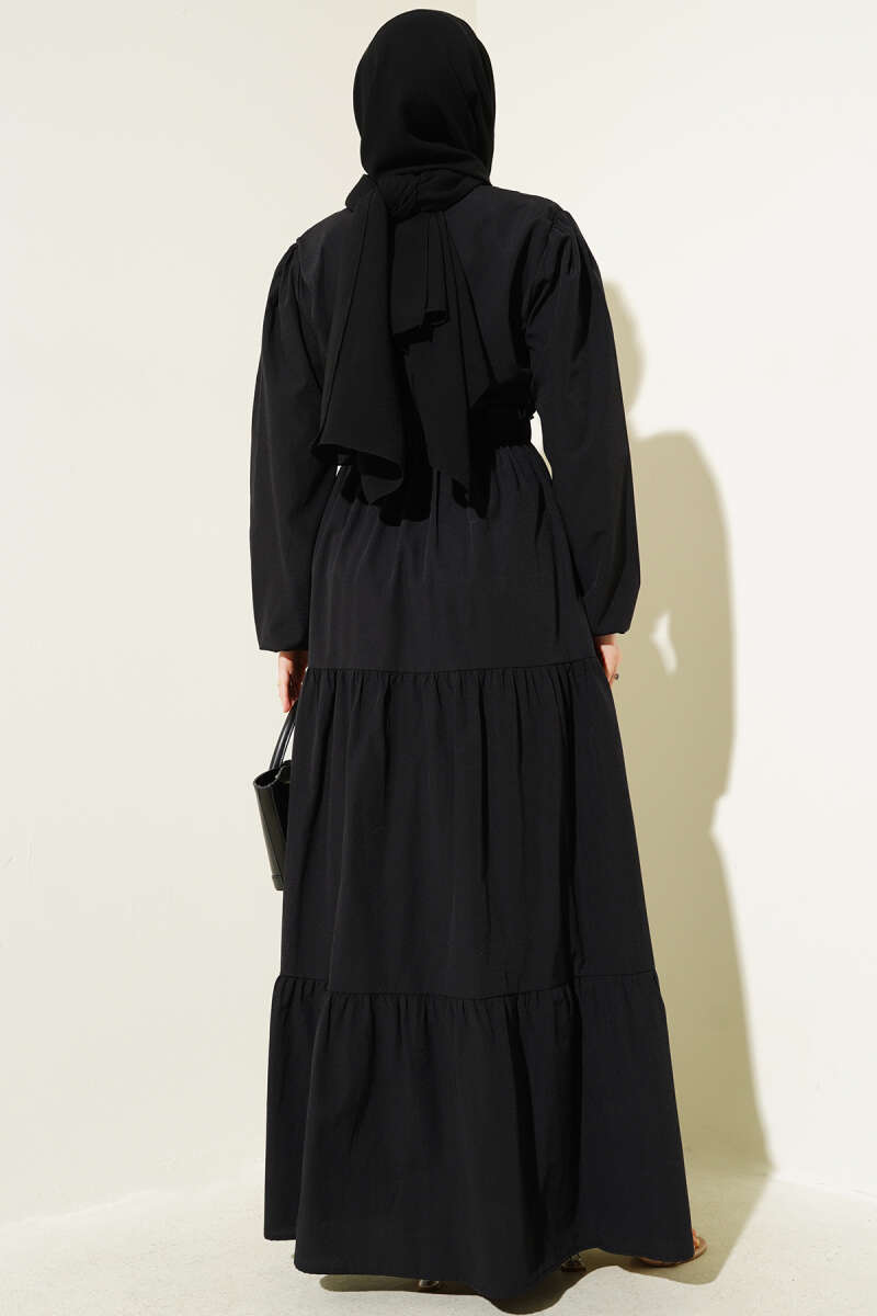 Bilek Bağlamalı Kuşaklı Abiye Elbise Siyah