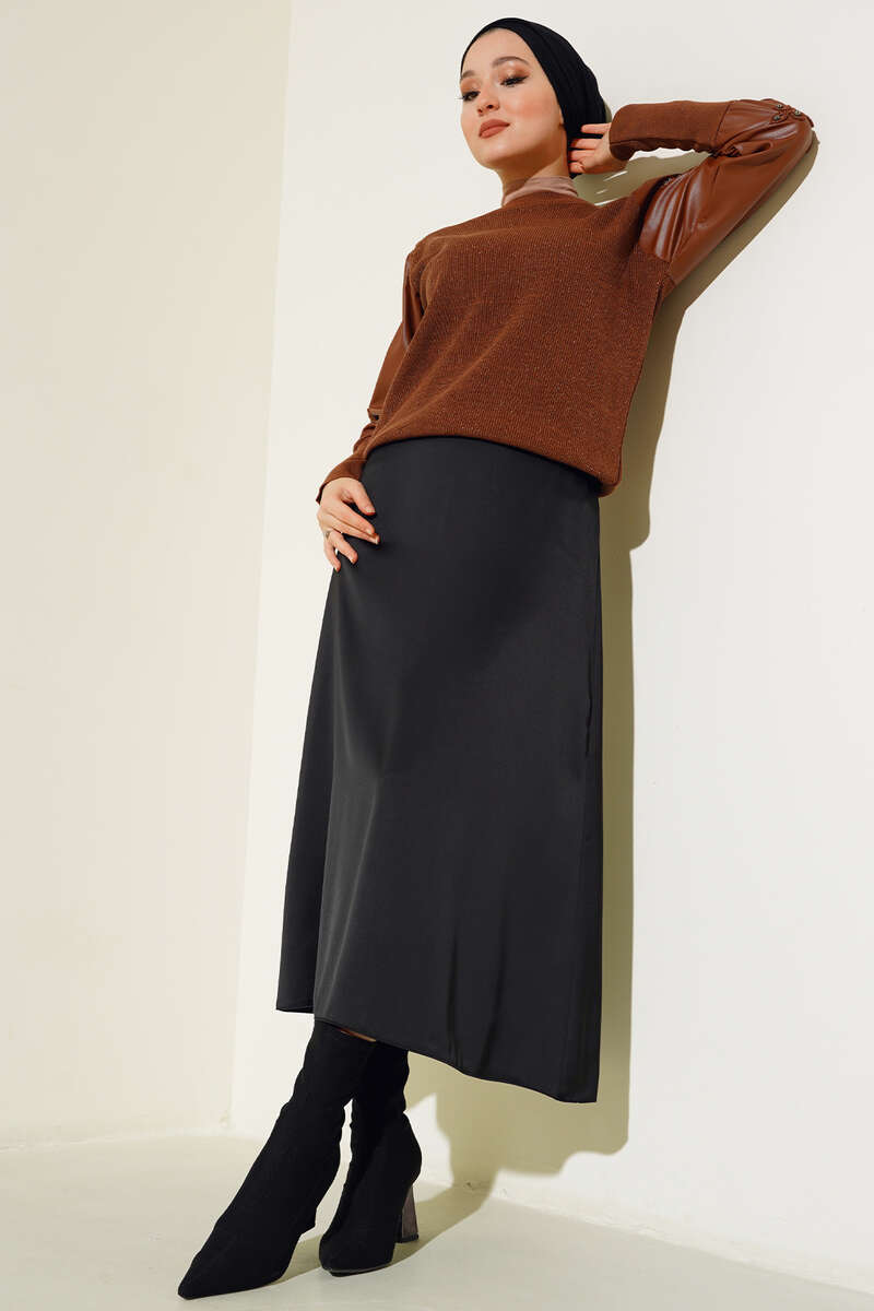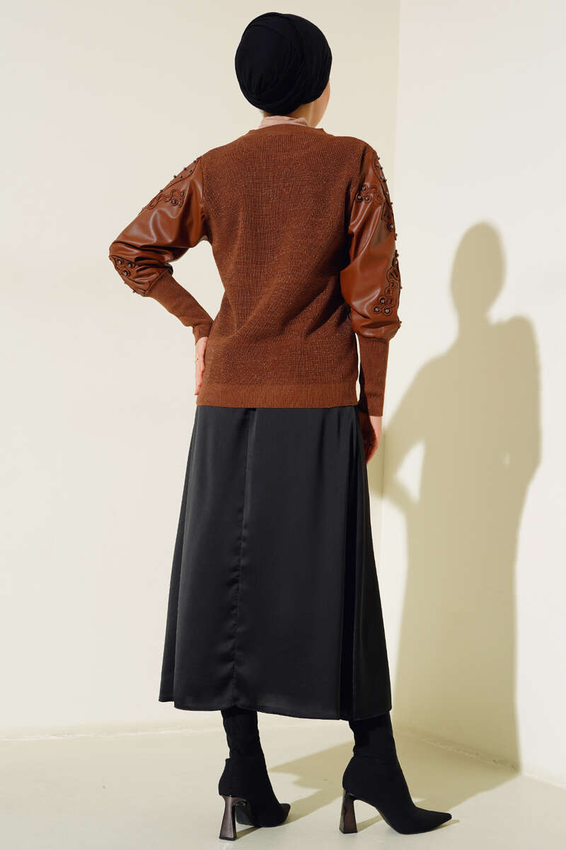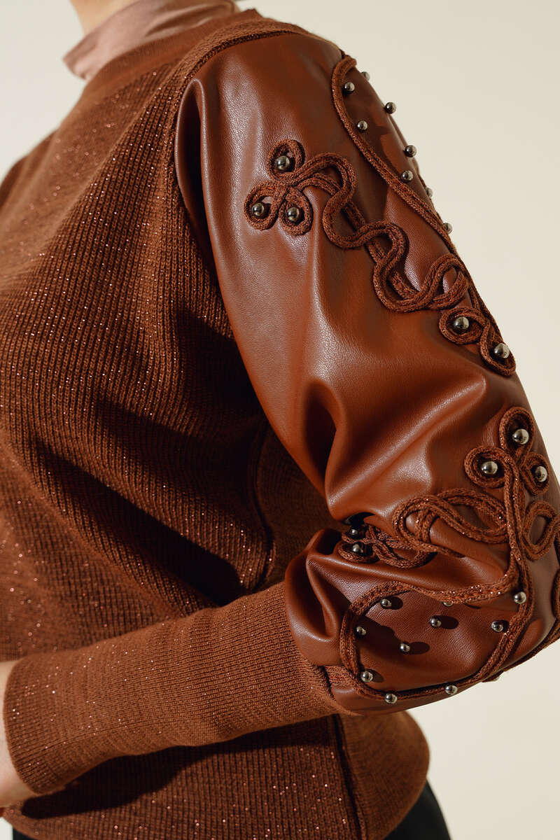 Yeni sezon kazak modelimizi çok seveceksiniz. Kolları deri olup nakış işlemelidir. Taşlı detaylarıyla hareketlik kazanmıştır. Kazağımız simli modeldir. Kol bileklerini esnemektedir.
