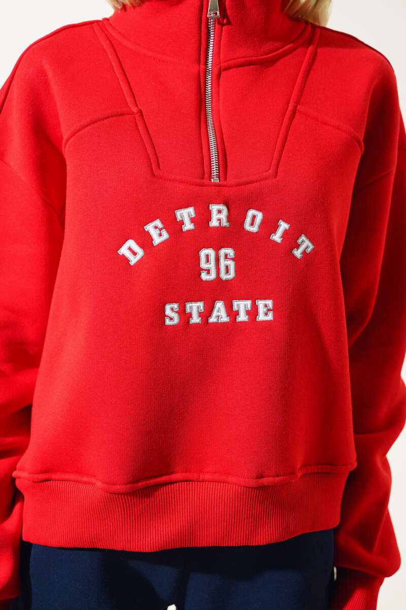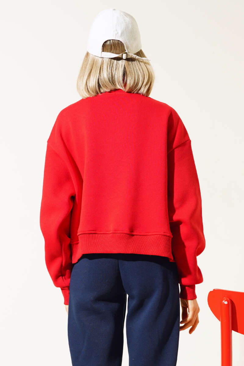 V Yaka Fitilli Kaşe Bluz Kırmızı