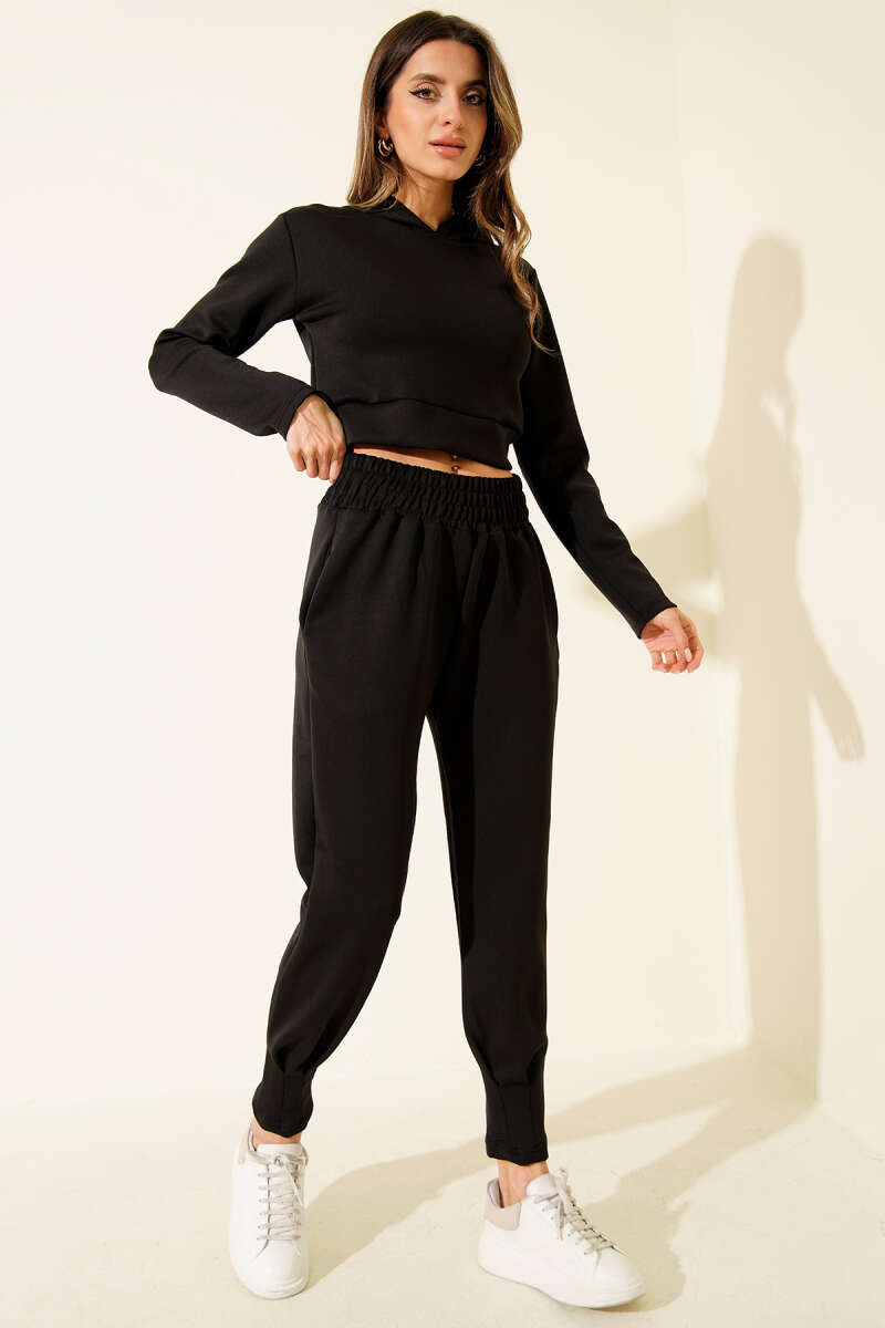 İspanyol Paça Bel Lastikli Pantolon Siyah