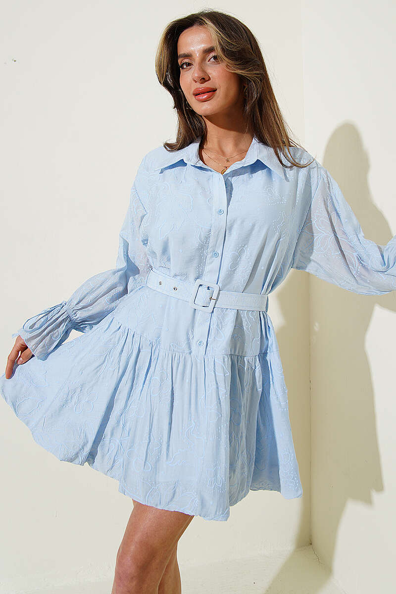 Mini Taş Detaylı Kot Pantolon Açık Mavi