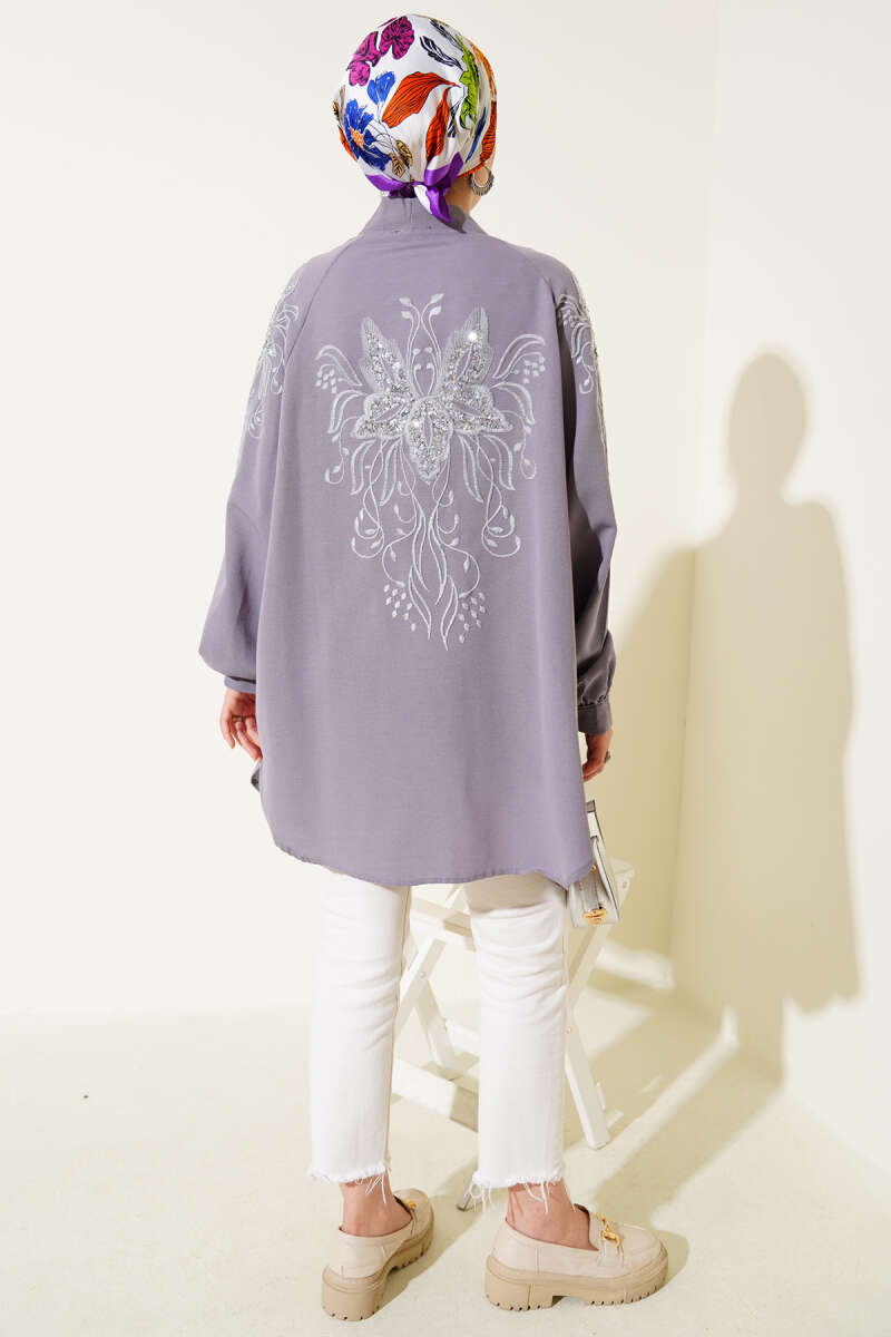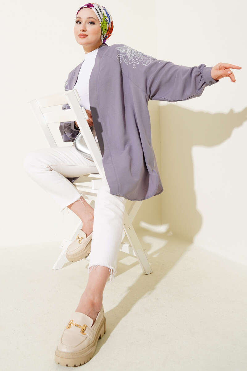 Kapüşonlu Fermuarlı Salaş Hırka Gri