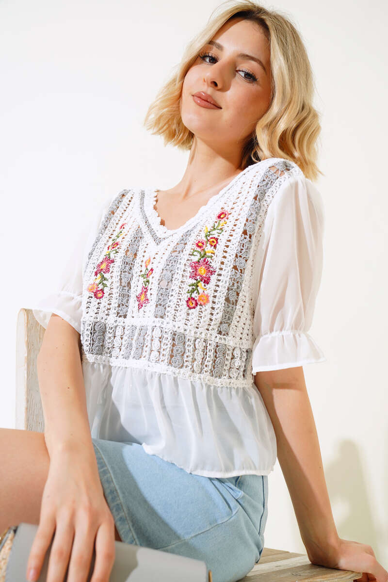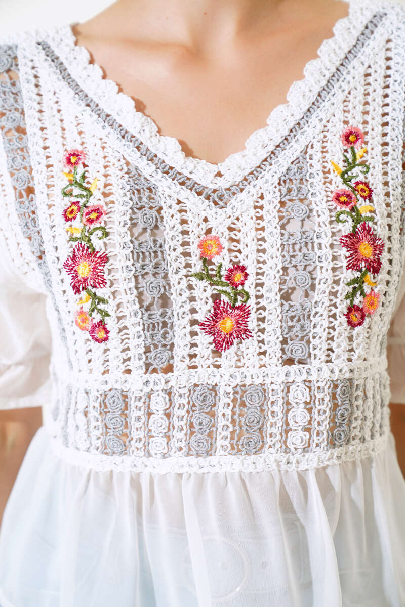 Nakışlı Şifon Bluz Gri
