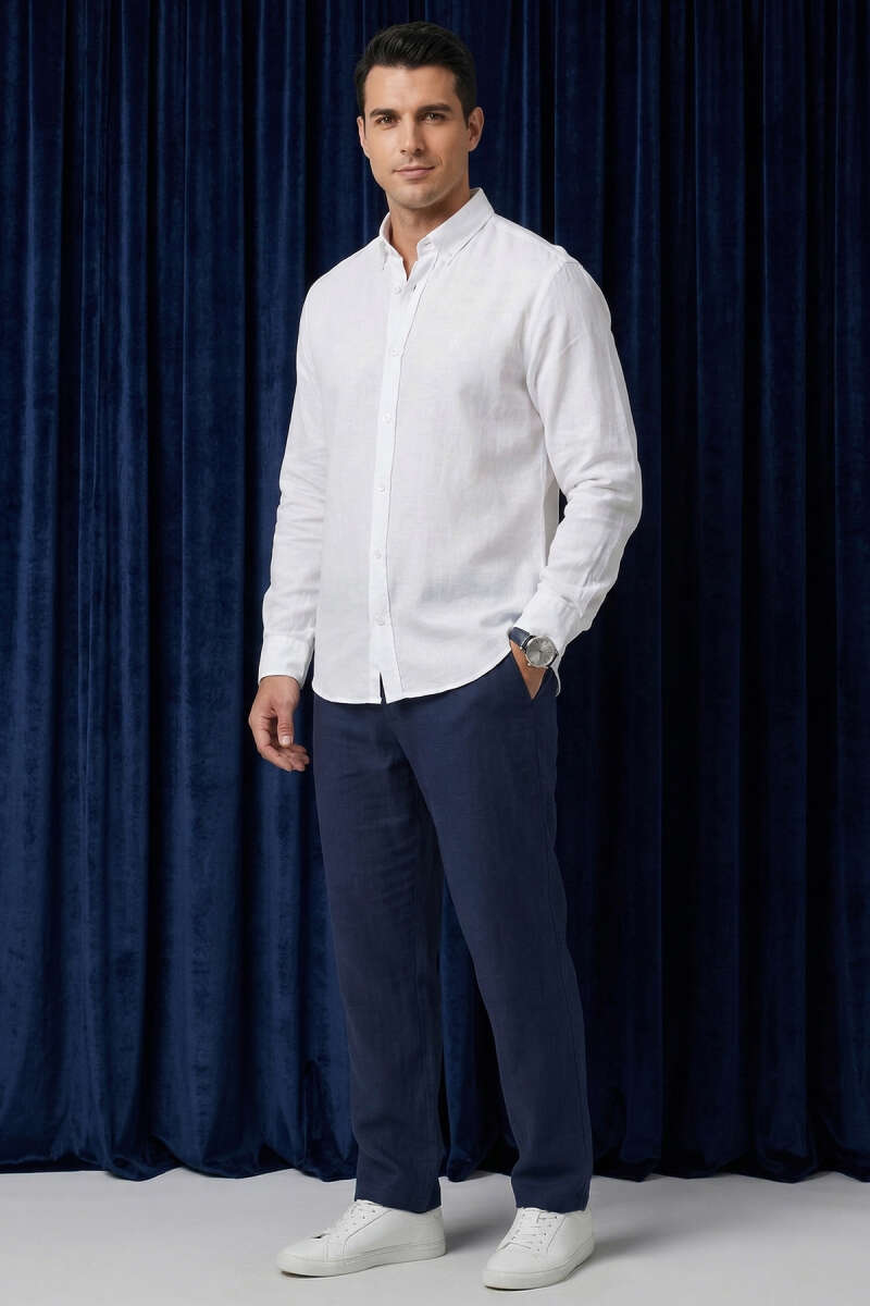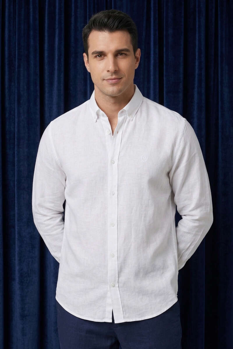 Nakışlı Tensel Erkek Gömlek Beyaz