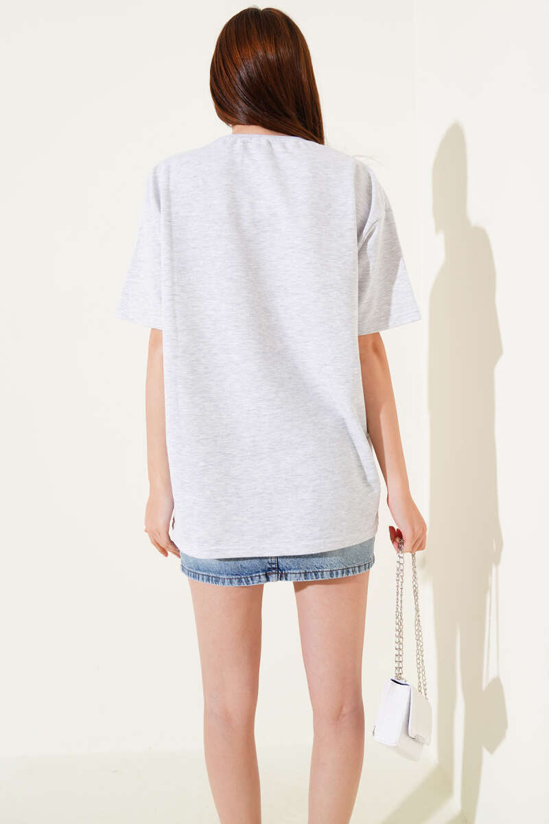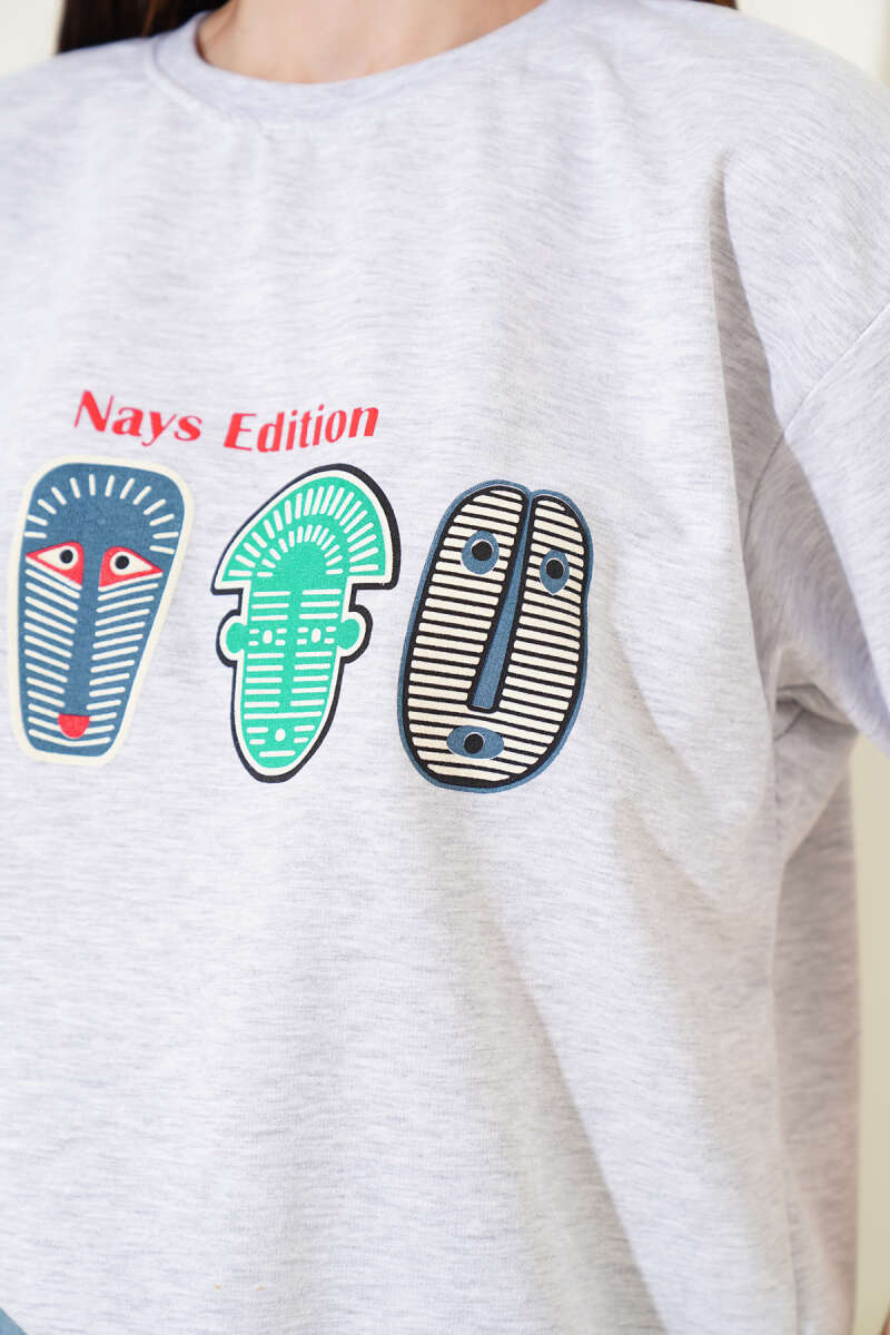 Nays Edition Baskılı T-shirt Melanj Gri