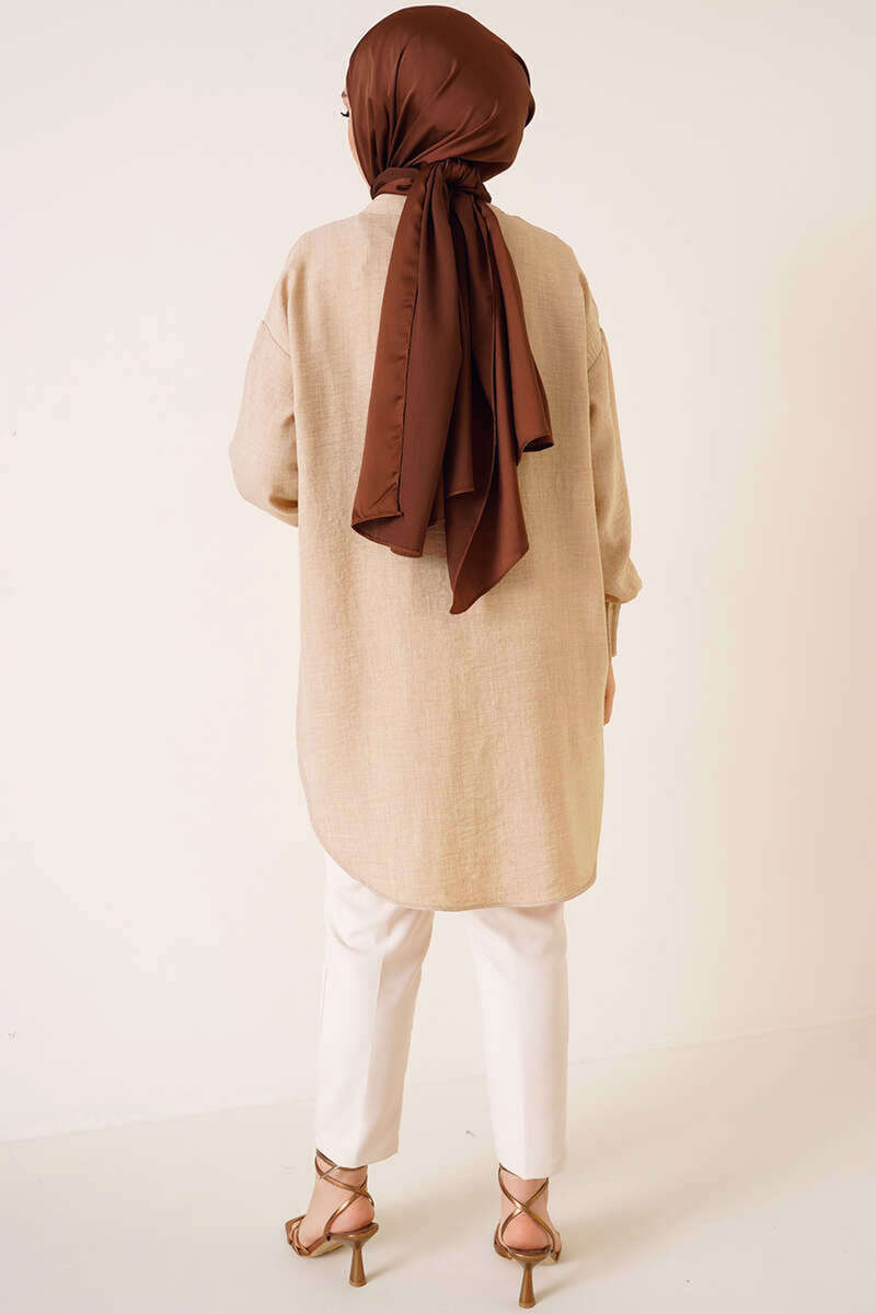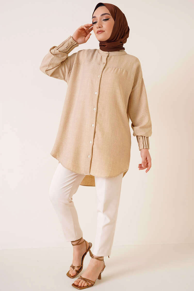 Nervür Detaylı Salaş Gömlek Bej