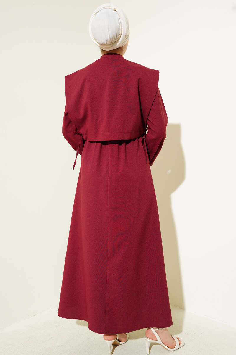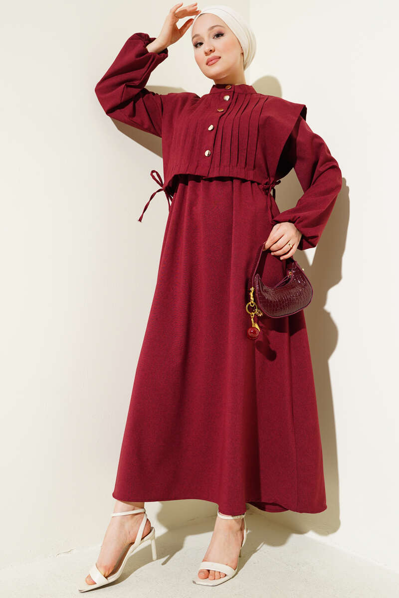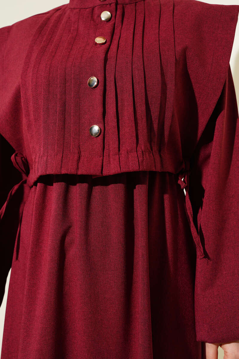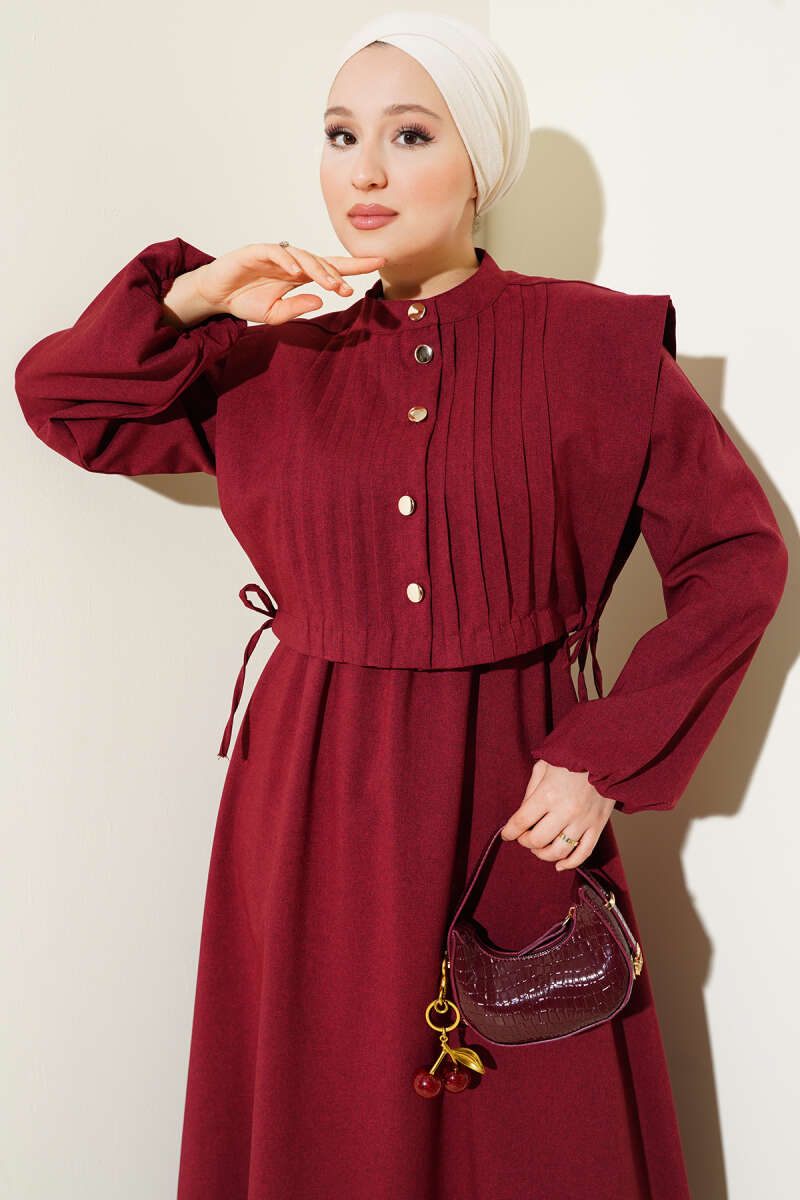 Gömlek Yaka Düğmeli Triko Elbise Bordo