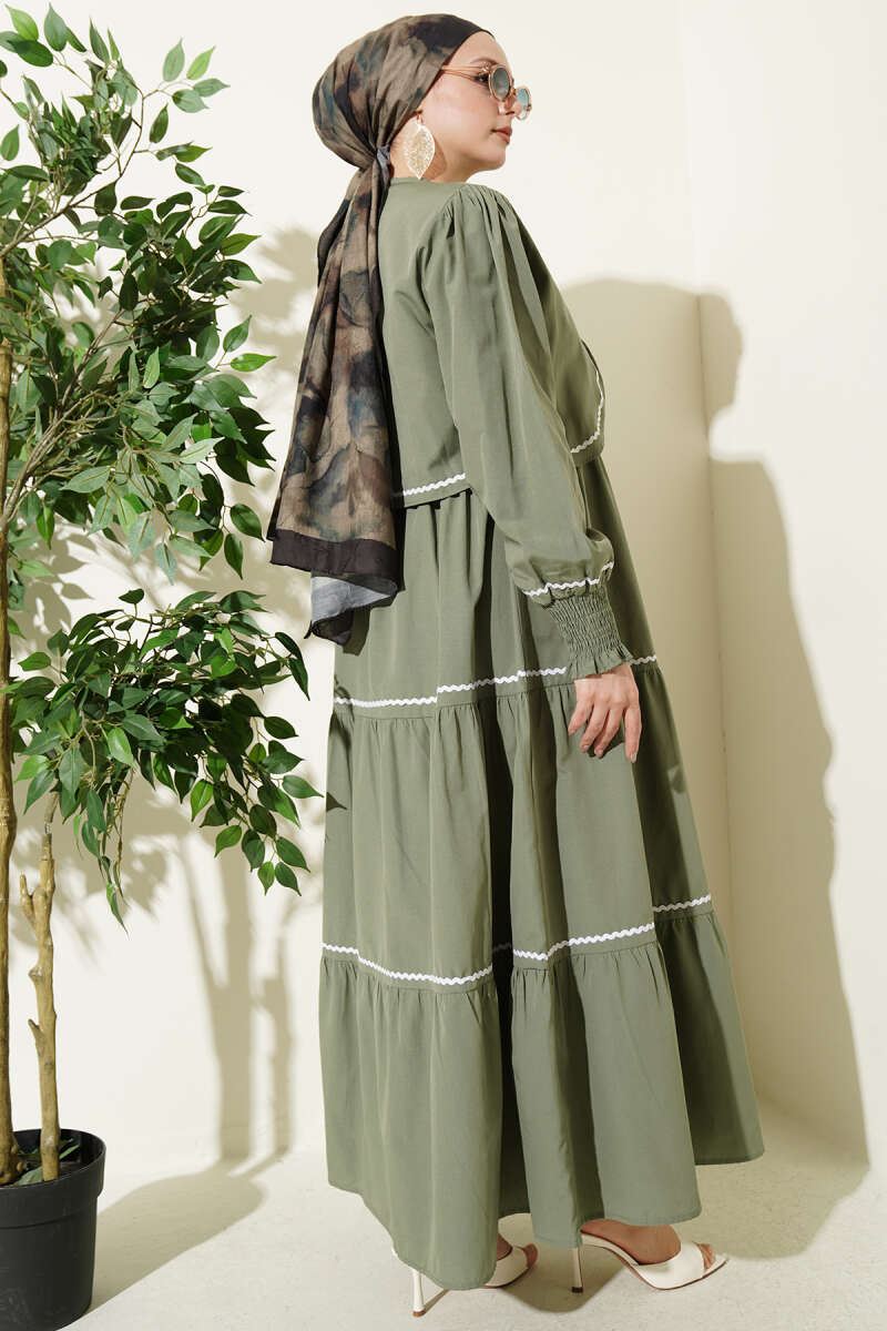 Nervür Dikiş Detaylı Elbise Takım Haki