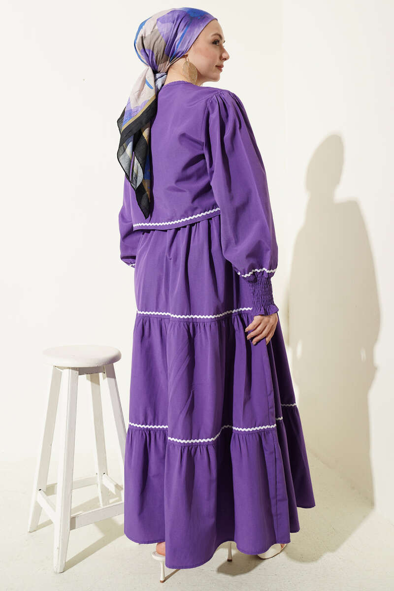 Nervür Dikiş Detaylı Elbise Takım Mor