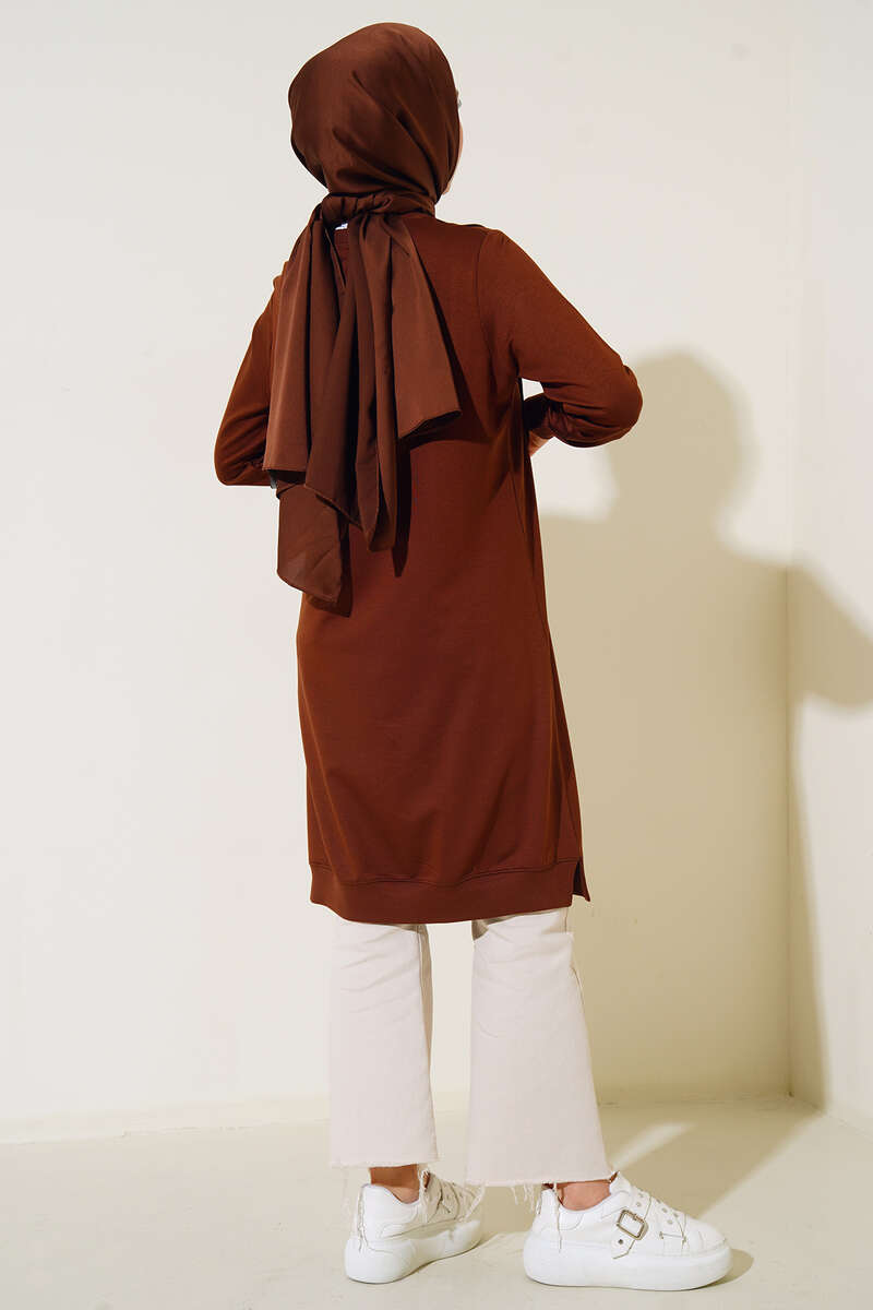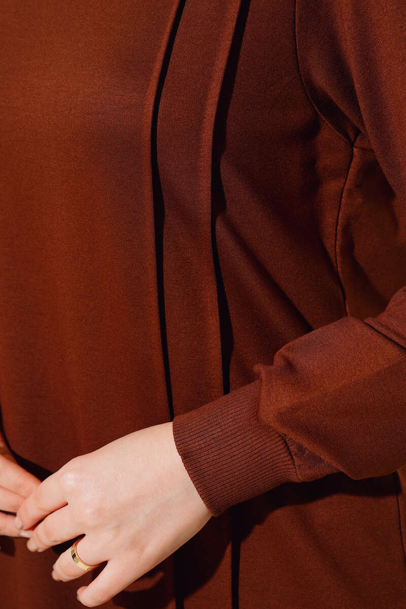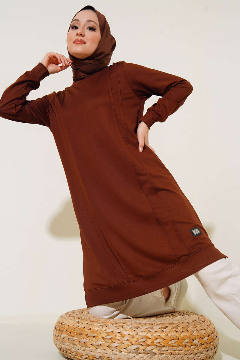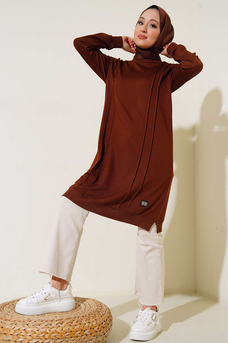 Nervür Dikişli Basic Uzun Tunik Kahve