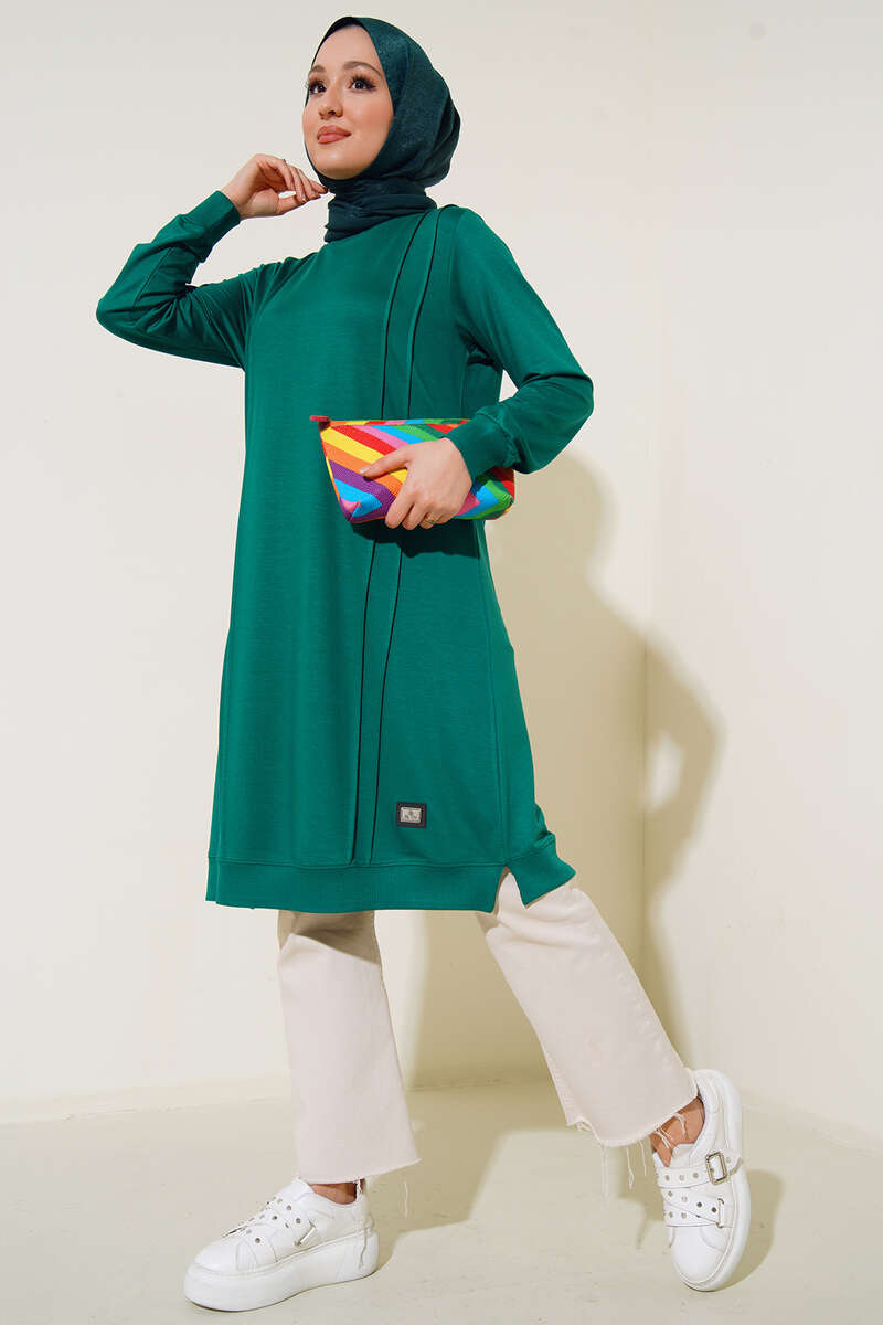 Tuniğimiz uzun modeldir. Dikey nervür dikiş detaylarına sahiptir. Ürünümüz bisiklet yakalıdır. Etek kısmında arma detayı bulunmaktadır. Renk seçenekleri mevcuttur.