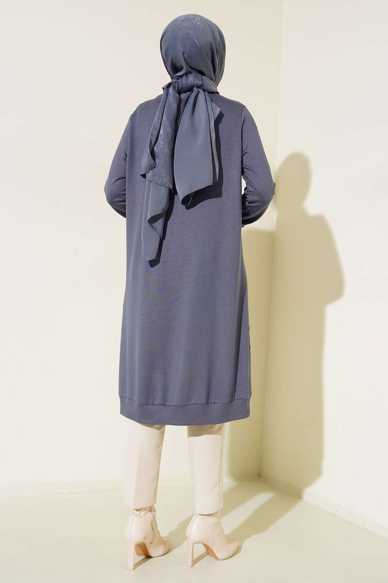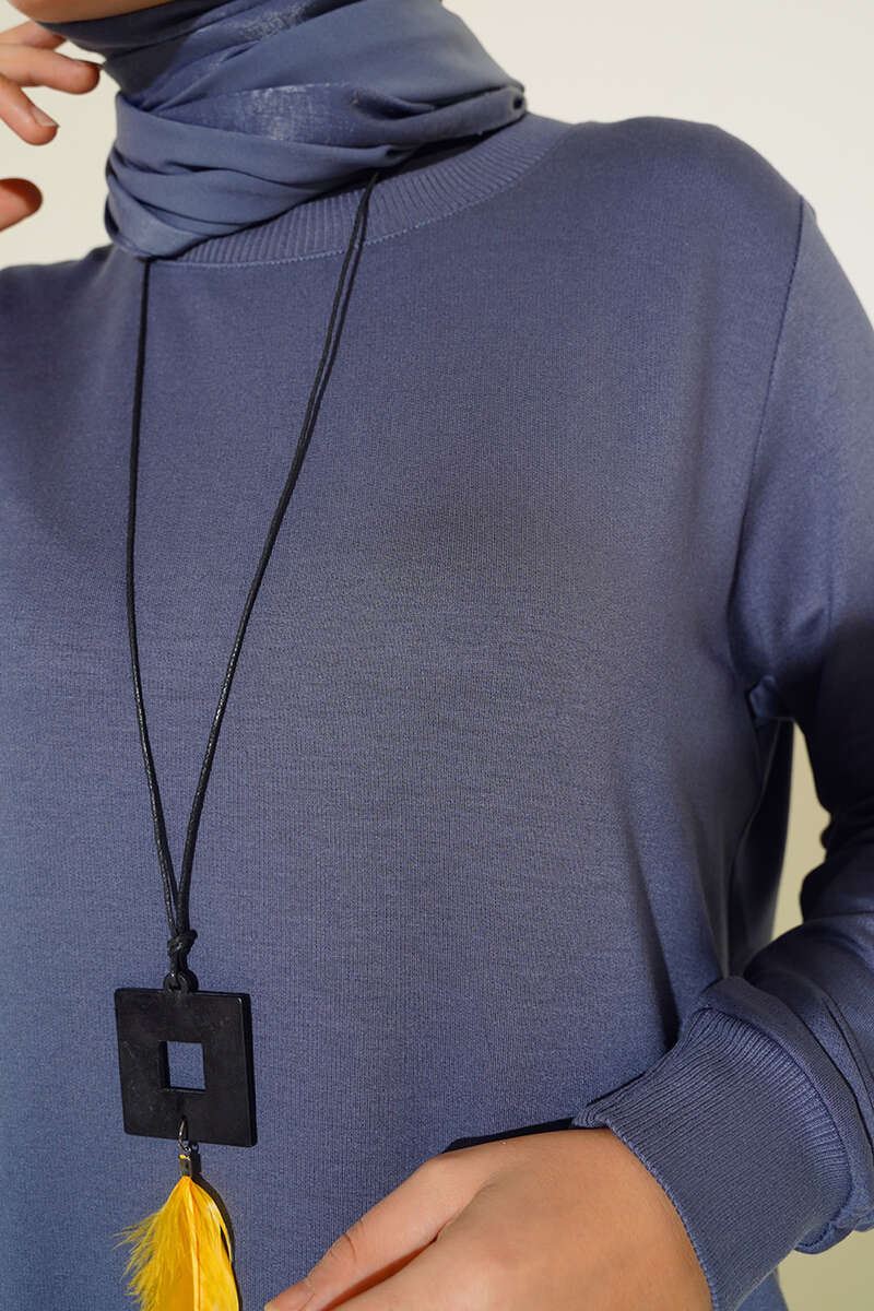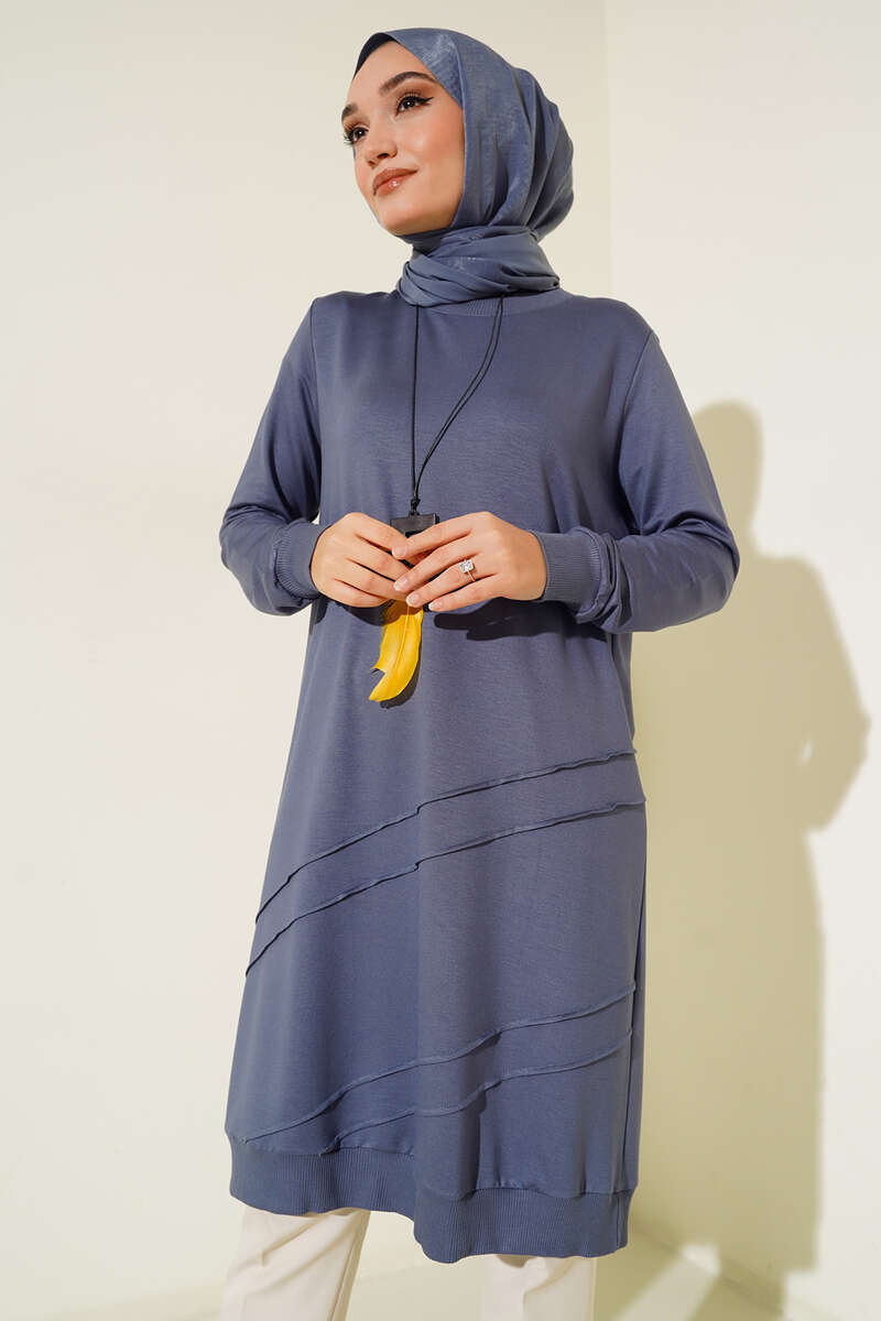 Çapraz nervür dikiş detaylı tuniğimiz bisiklet yakalıdır. Uzun modeldir. Bilekleri garnilidir. Kuş tüyü detaylı kolyesi bulunmaktadır. Renk seçenekleri mevcuttur.