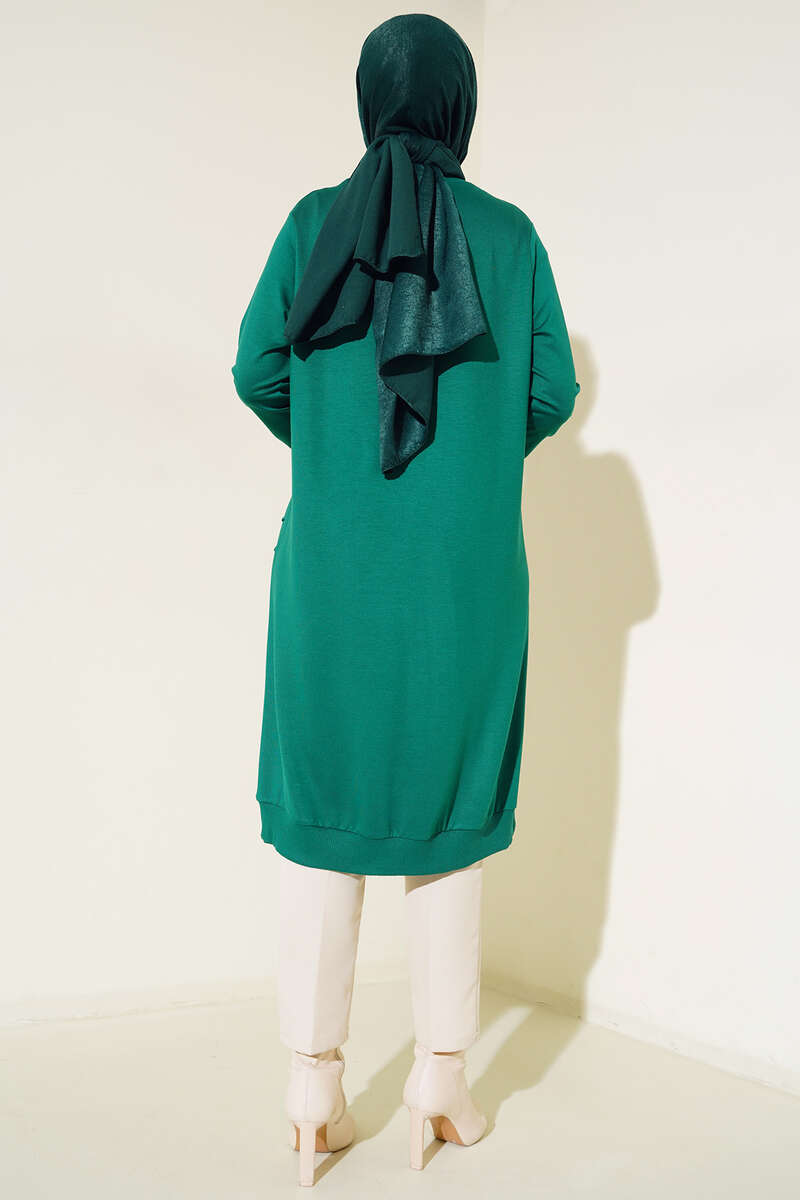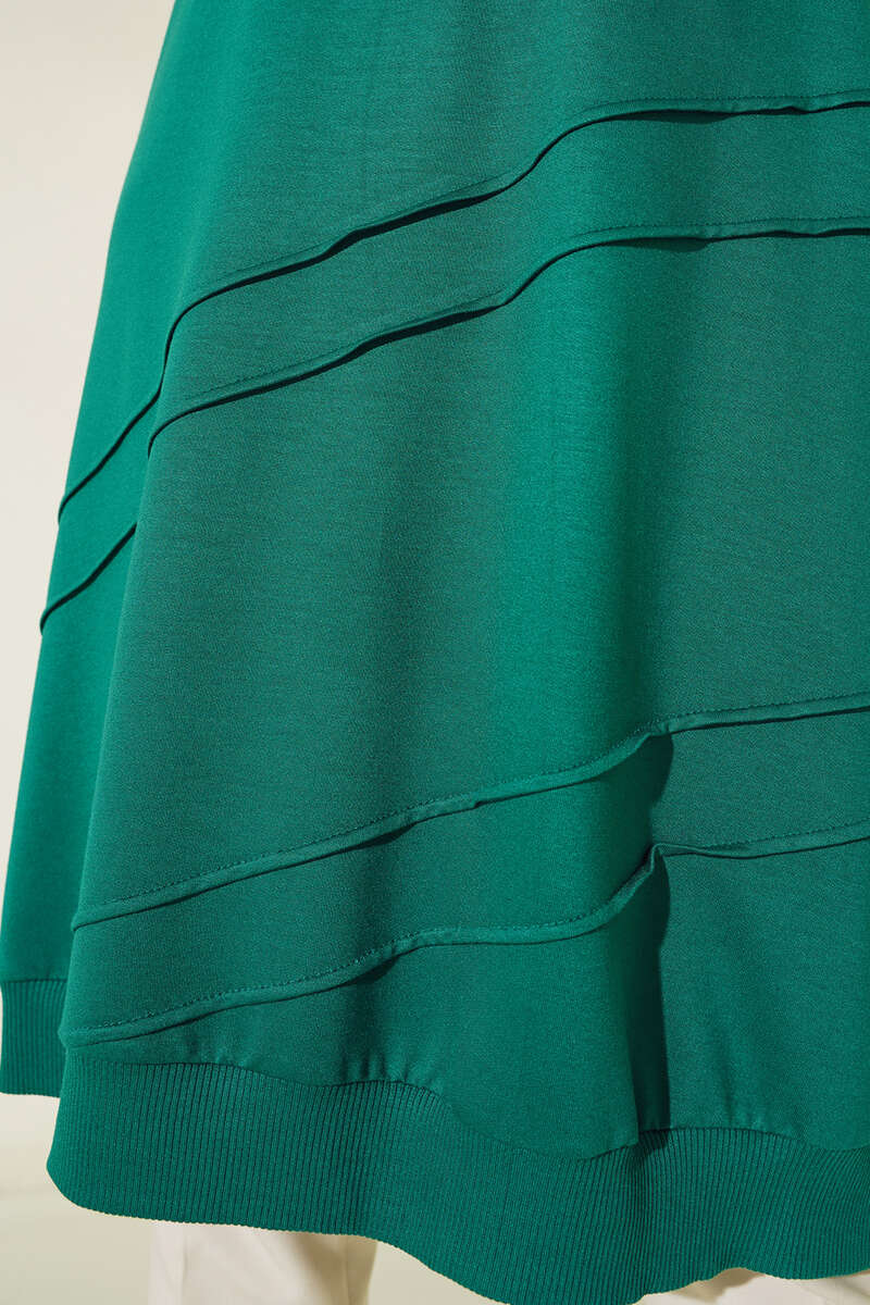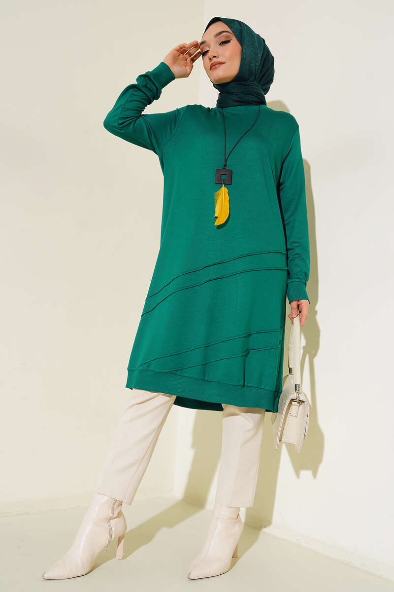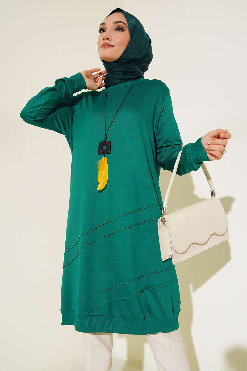 Nervür Dikişli Kolyeli Uzun Tunik Yeşil