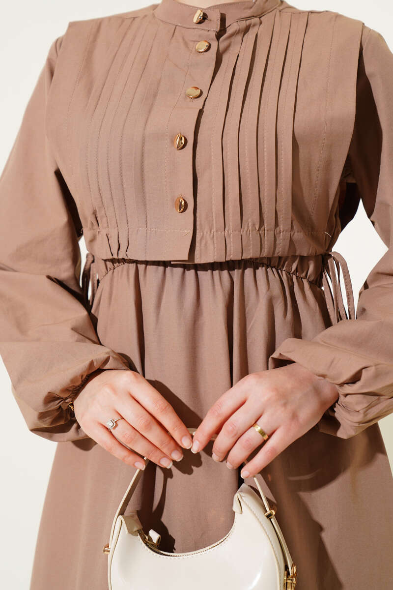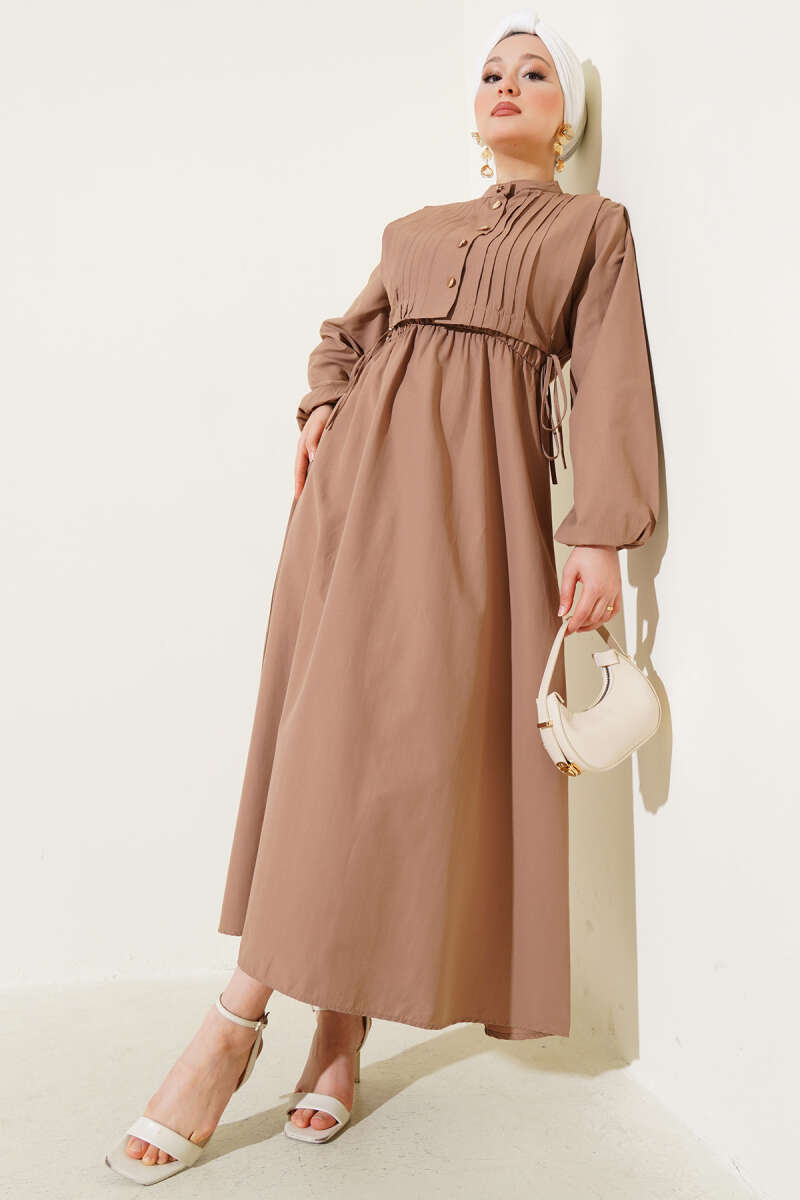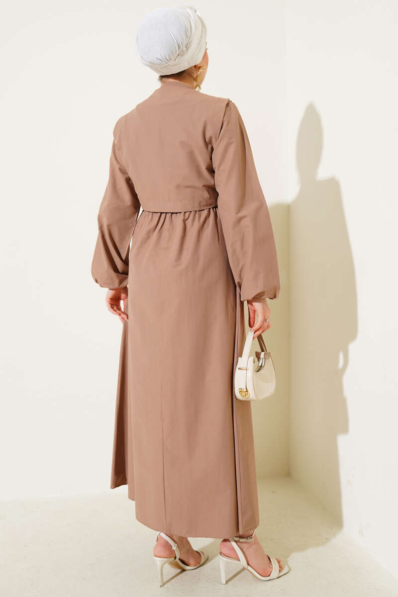 Bel Taşlı Pelerinli Abiye Elbise Kahve