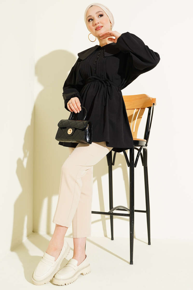 Nervürlü Yarım Düğmeli Tunik Kahve