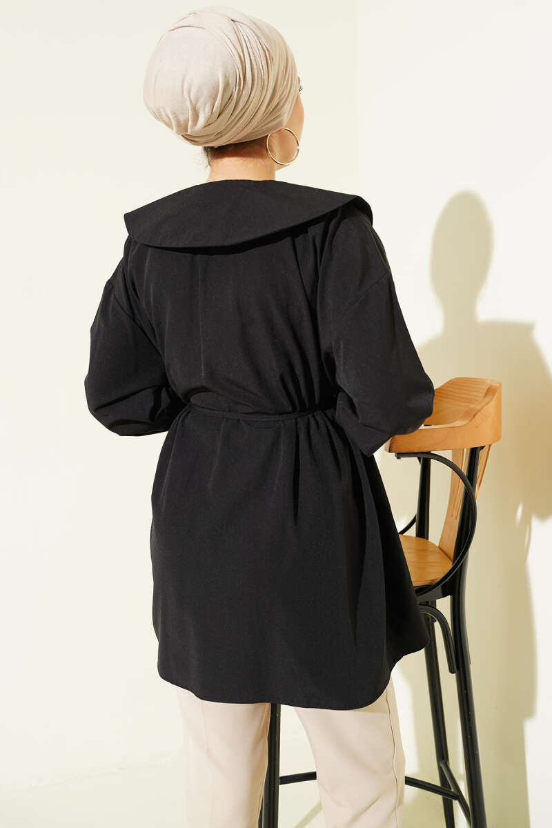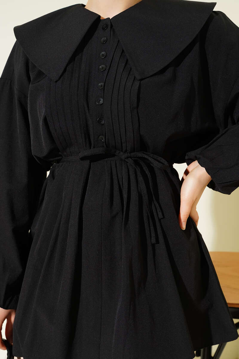 Yatay Çizgi Detaylı Basic Triko Tunik Siyah