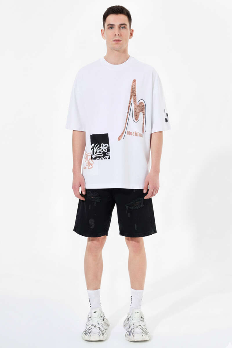 Machinist Nakışlı Oversize Erkek T-shirt Ekru