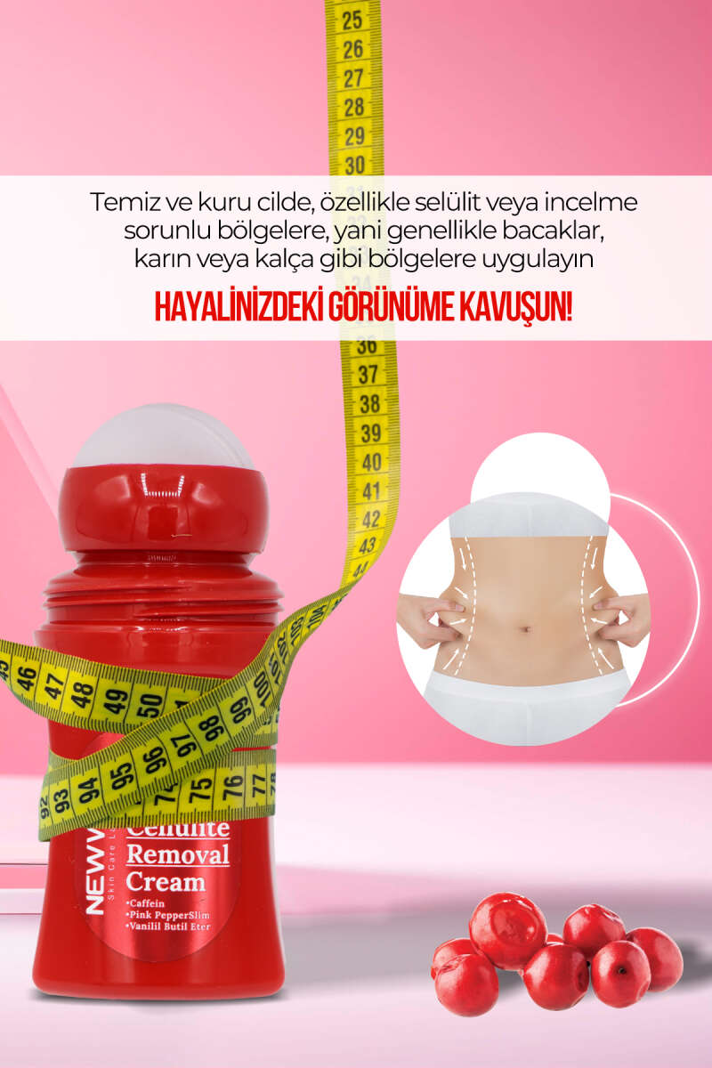 Bu basit adımları takip ederek, Roll-on masaj başlığına sahip ambalajınızla Silimming Cellulite Removal Cream'i pratik bir şekilde kullanabilir ve istenilen sonuçları elde edebilirsiniz.