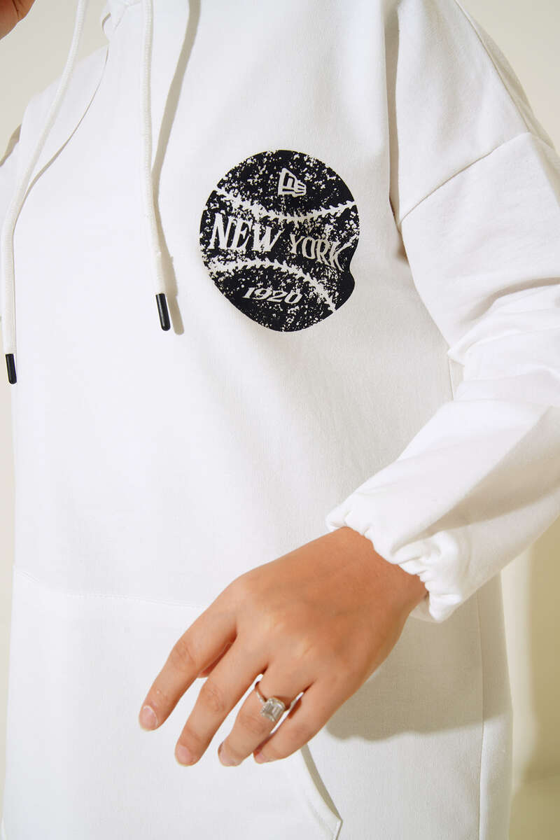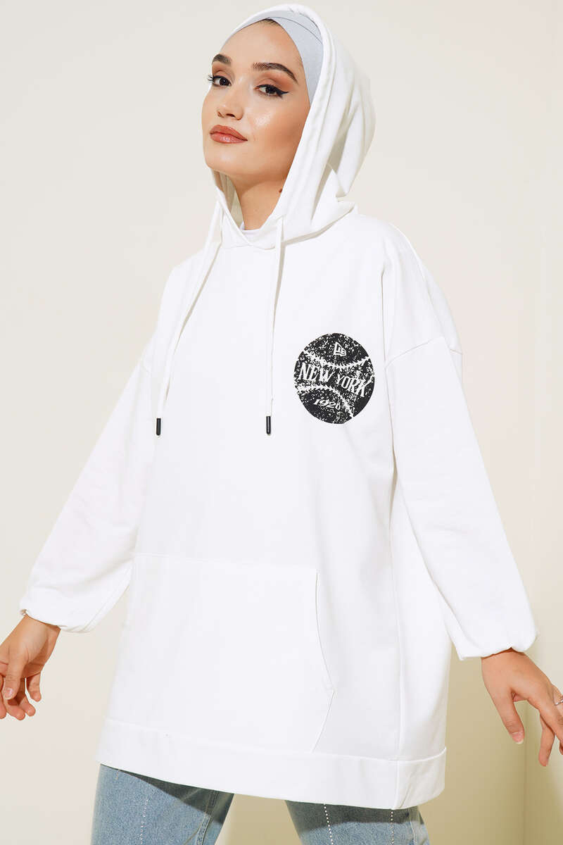 Newyork İki İpli Kapşonlu Tunik Beyaz