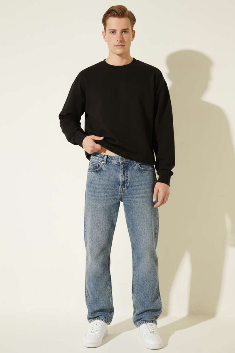 Regular Fit Bol Erkek Kot Pantolon Mavi