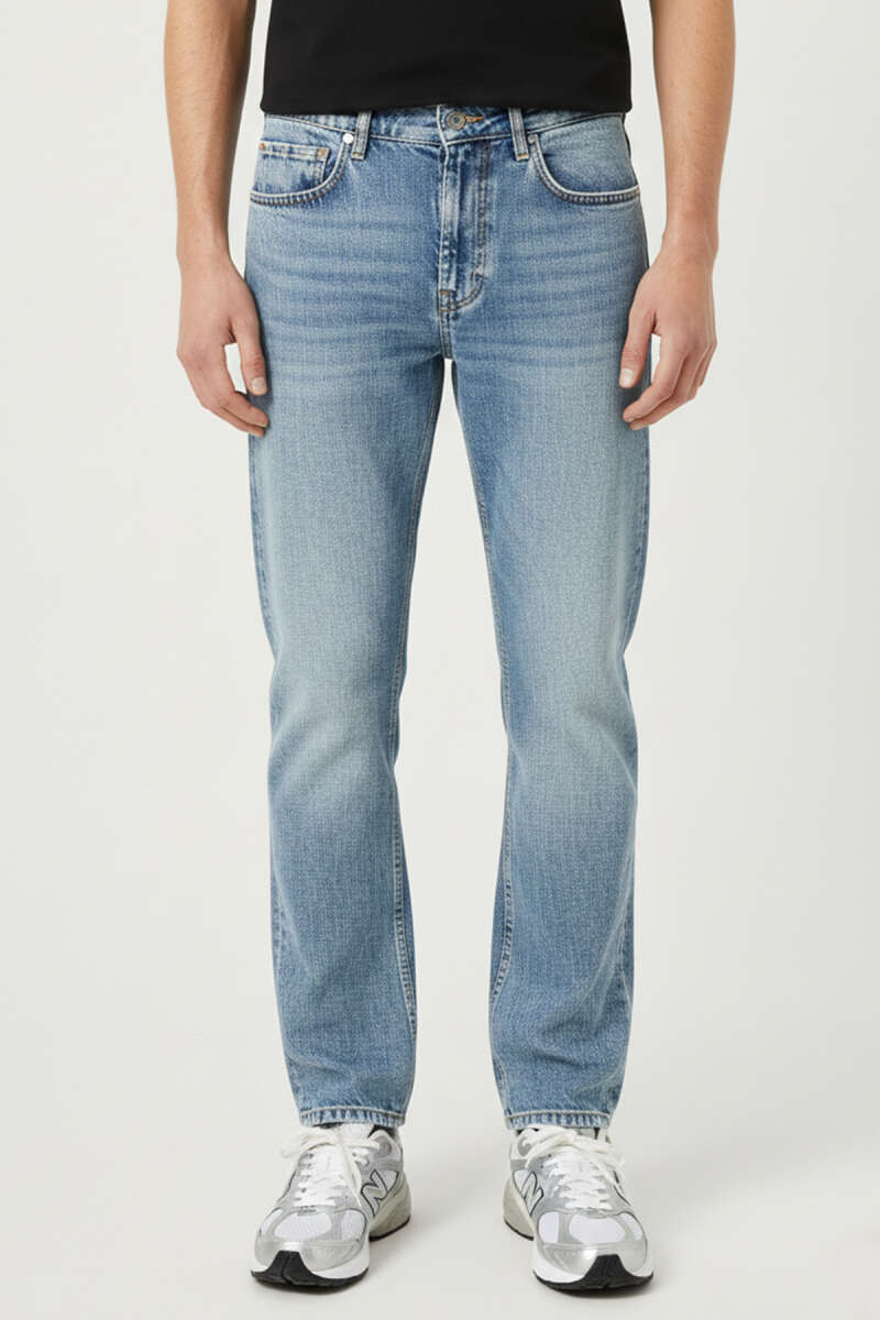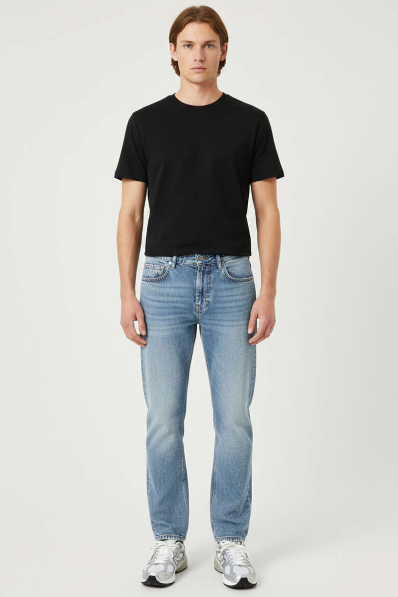 Düğmeli Regular Erkek Kot Pantolon Açık Mavi