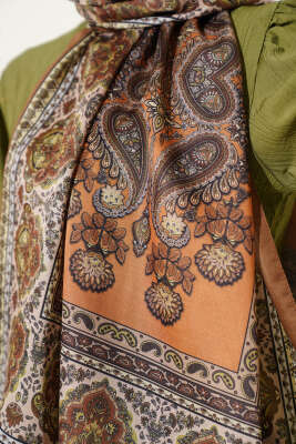 Ebruli Desenli Bambu Kraş Şal Acı Kahve