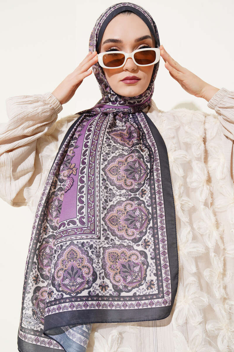 Ebruli Desenli Bambu Kraş Şal Mürdüm