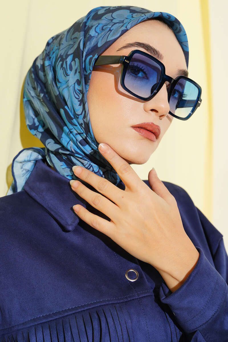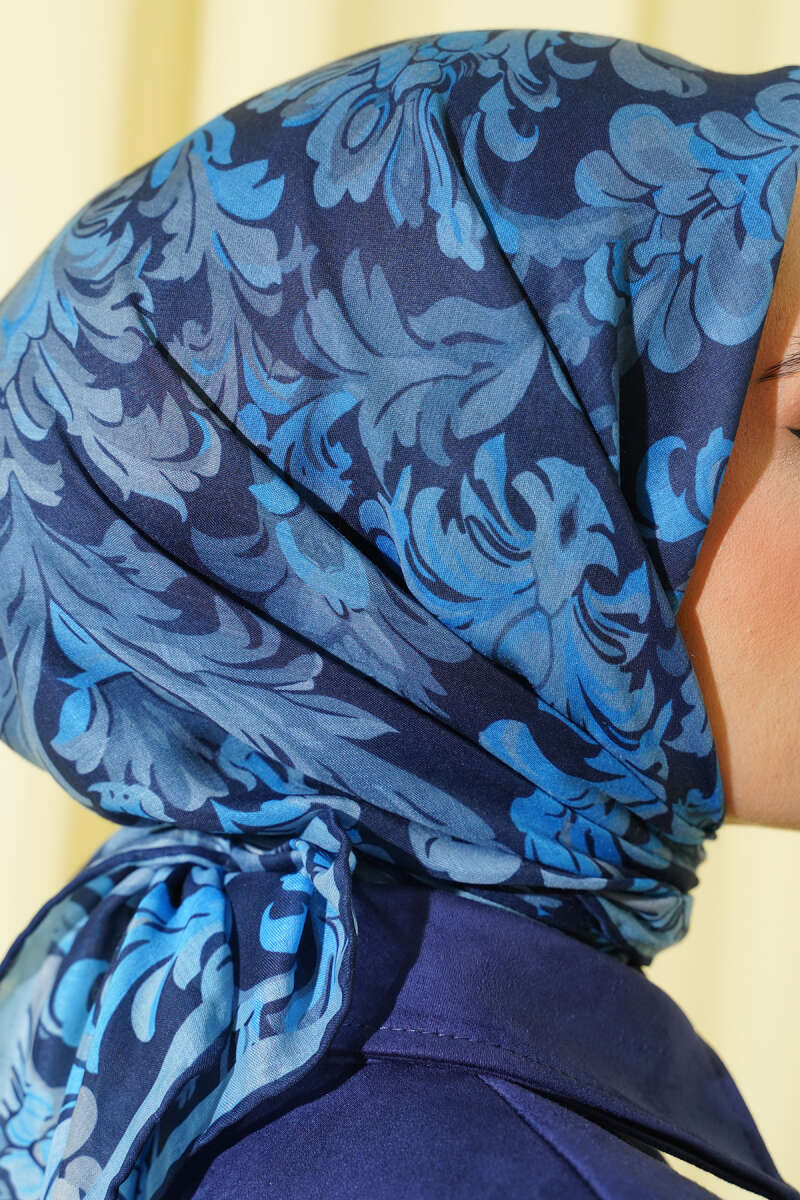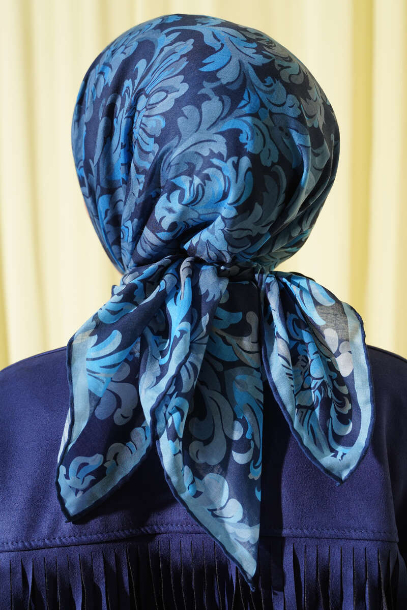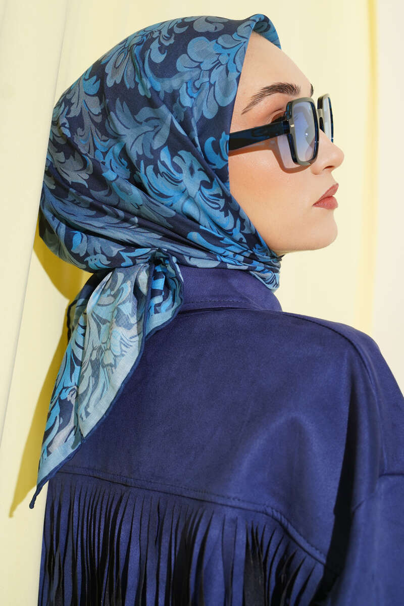 Motifli Modal Eşarp Lacivert