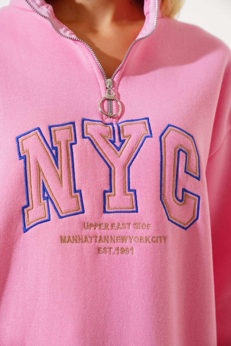Nyc Basklı Şardonlu Sweatshirt Pembe