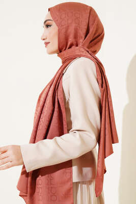 Monogram Desen Şerit Geçişli Şal Yeşil