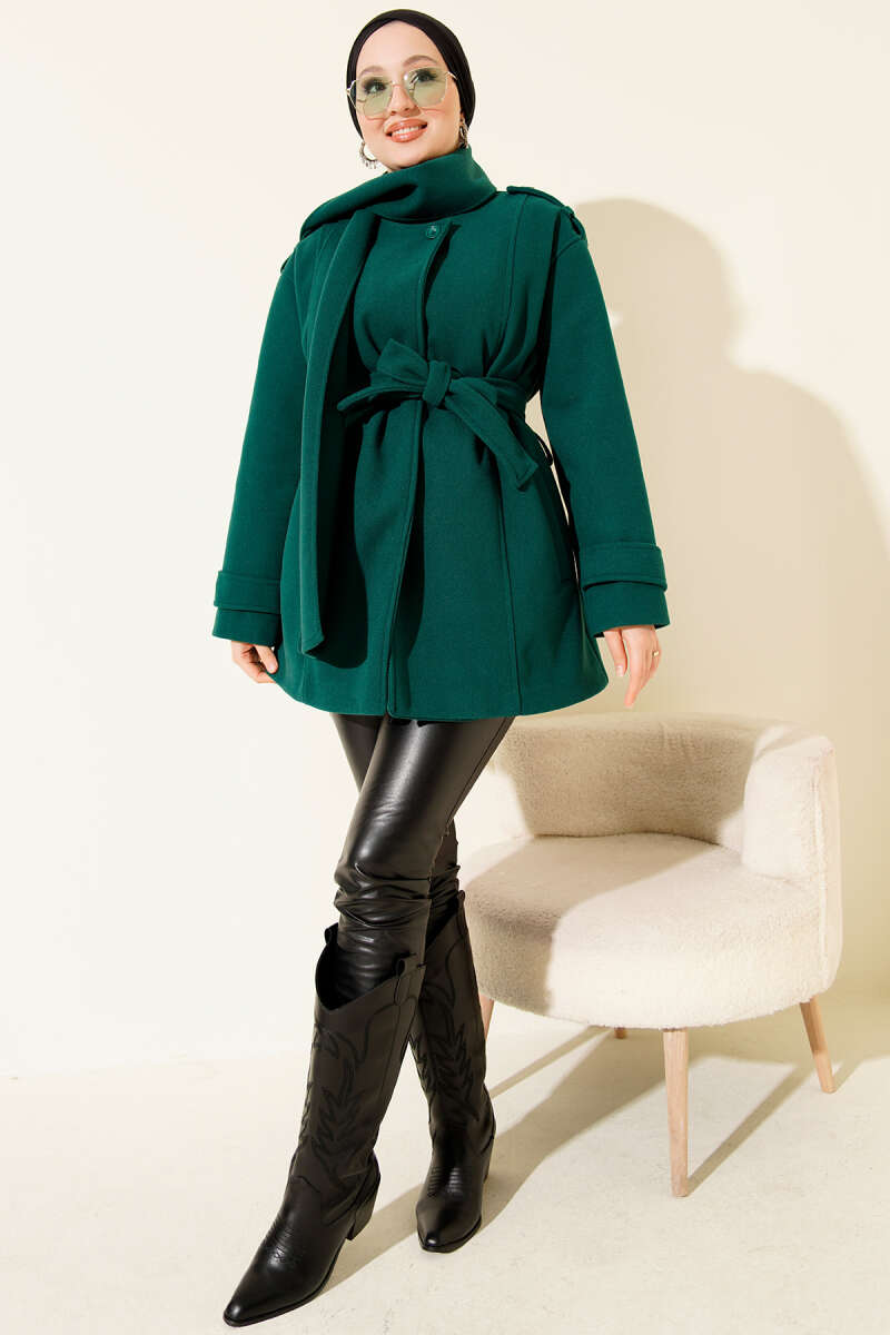 Bebe Yaka Kuşaklı Kaşe Kaban Taş