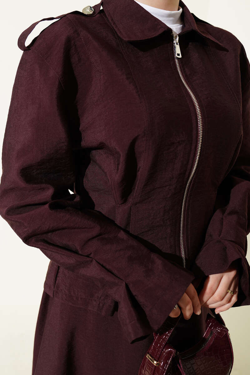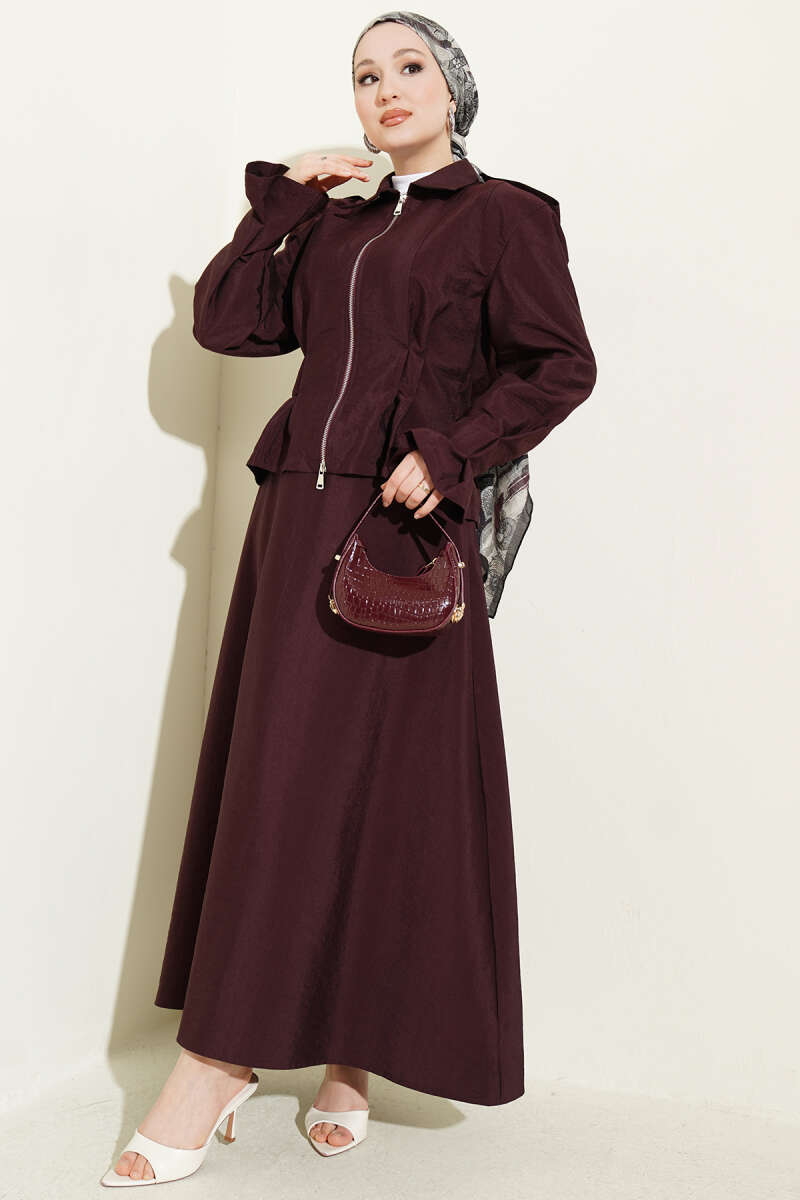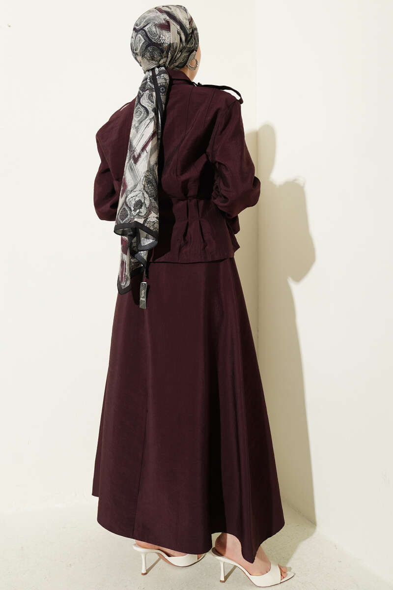 Omuz Apoletli Bel Pensli Etekli Takım Mürdüm