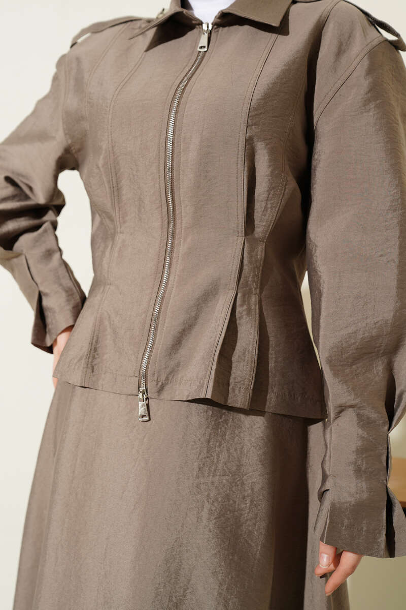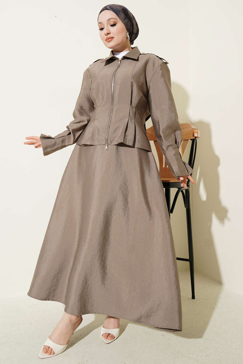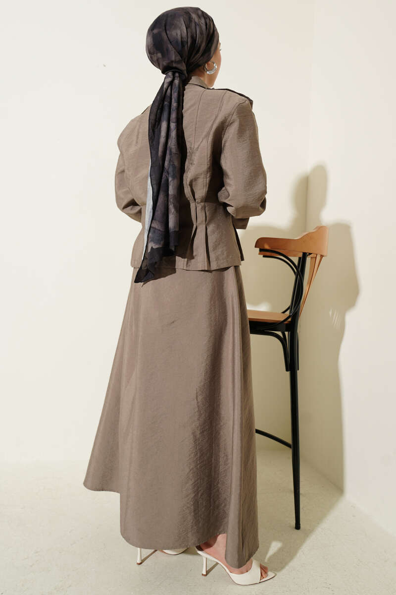 Omuz Apoletli Bel Pensli Etekli Takım Vizon