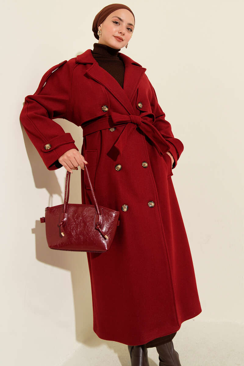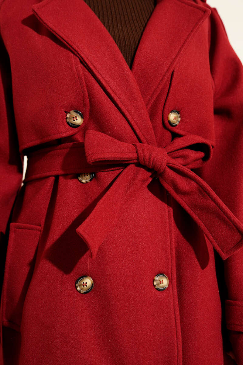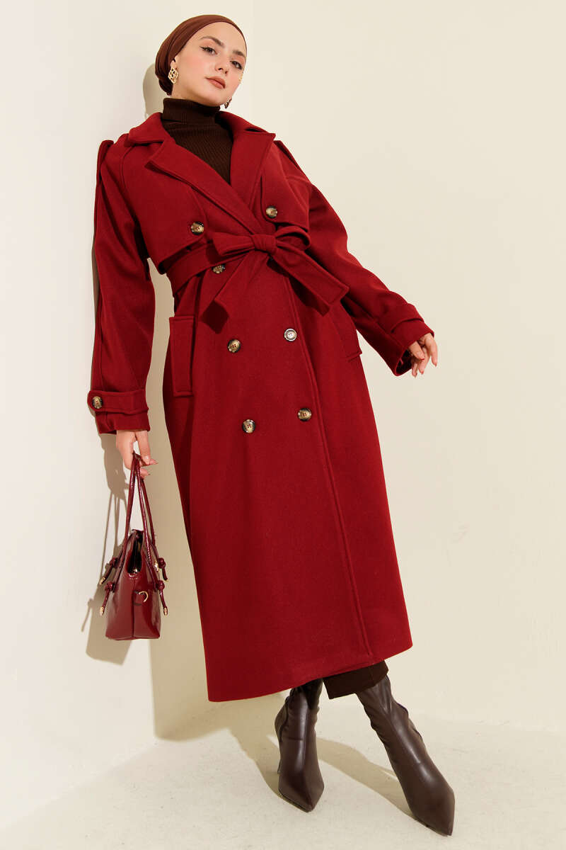 Kruvaze Yakalı Kuşaklı Uzun Kaşe Kaban Taş