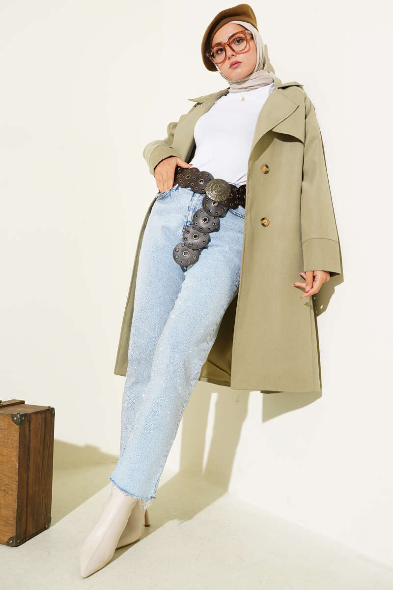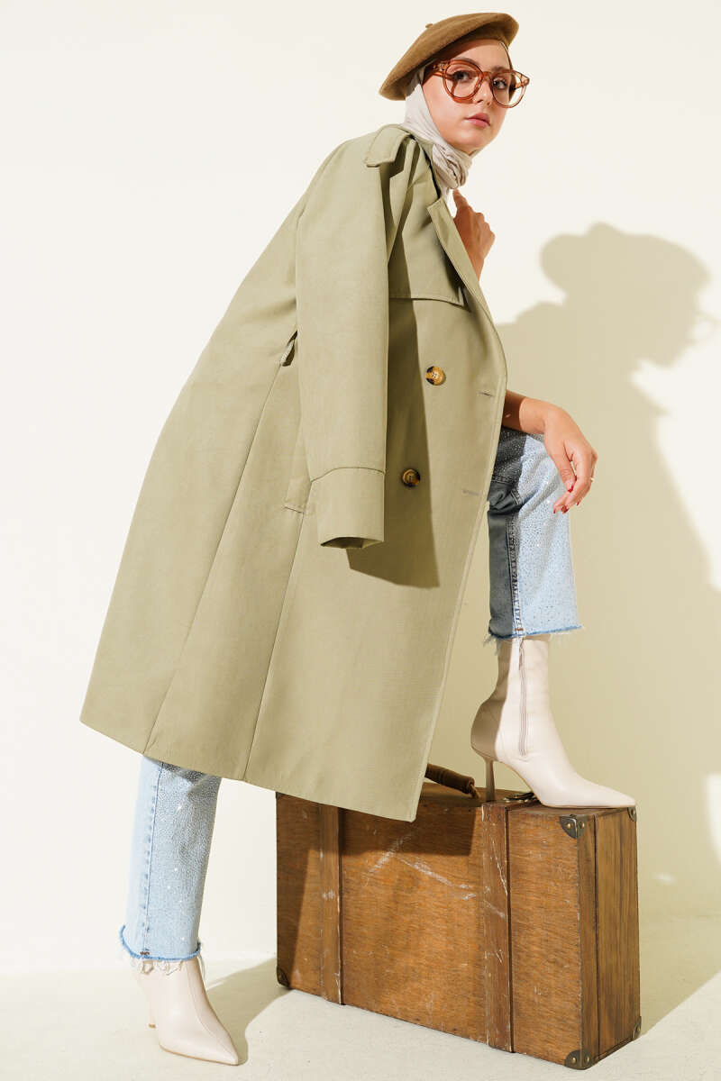 Omuz Apoletli Düğme Detaylı Trençkot Taş