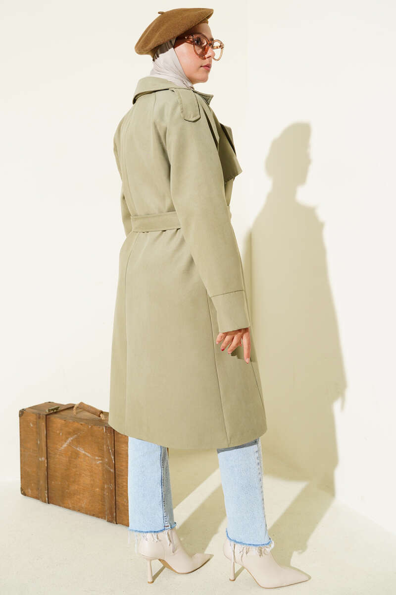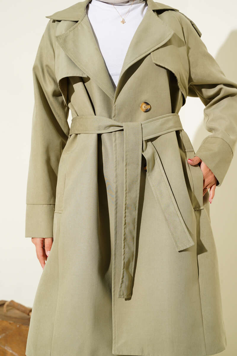 Bel Tünelli Kapüşonlu Trençkot Haki