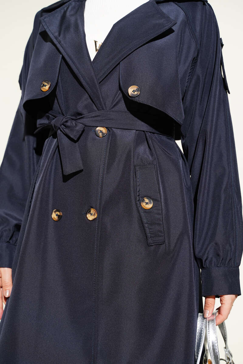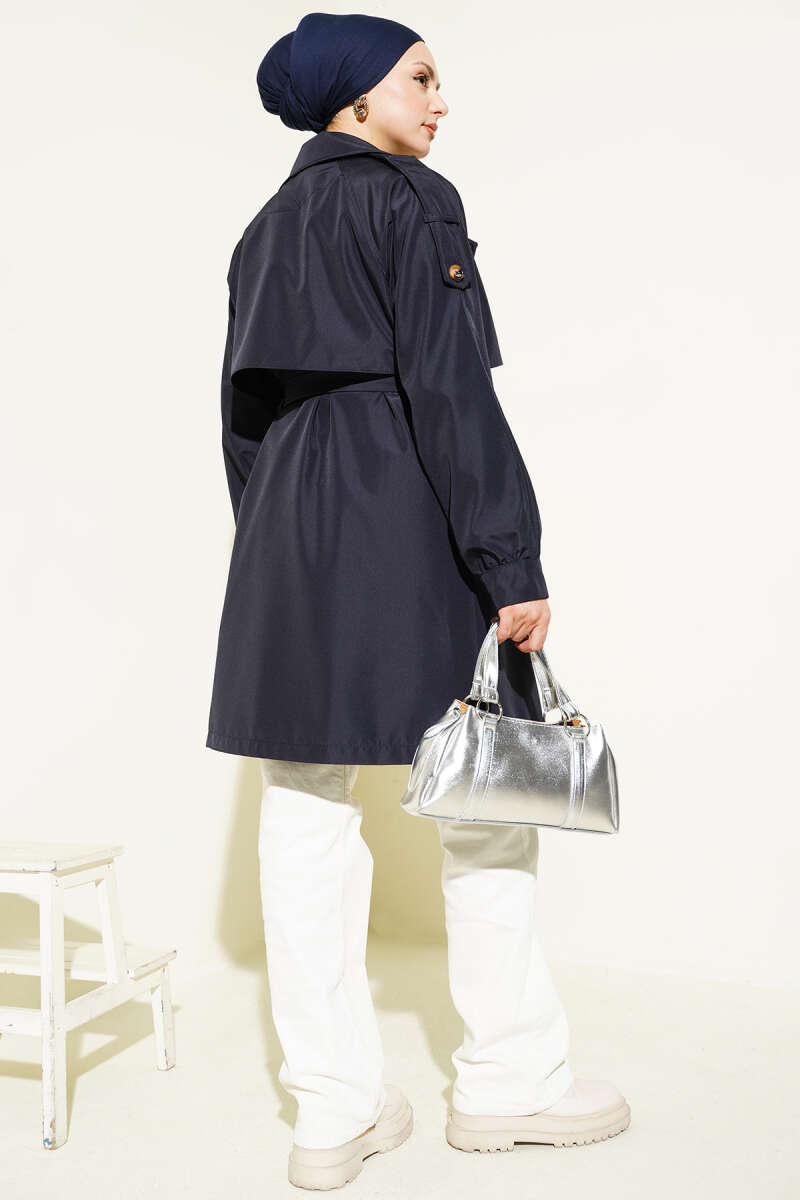 Parça Detaylı Salaş Kot Trençkot Lacivert
