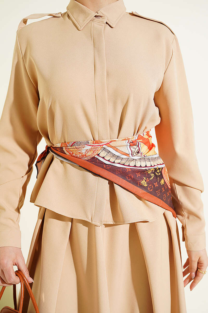 Bel Pensli Kendinden Kuşaklı Takım Bej