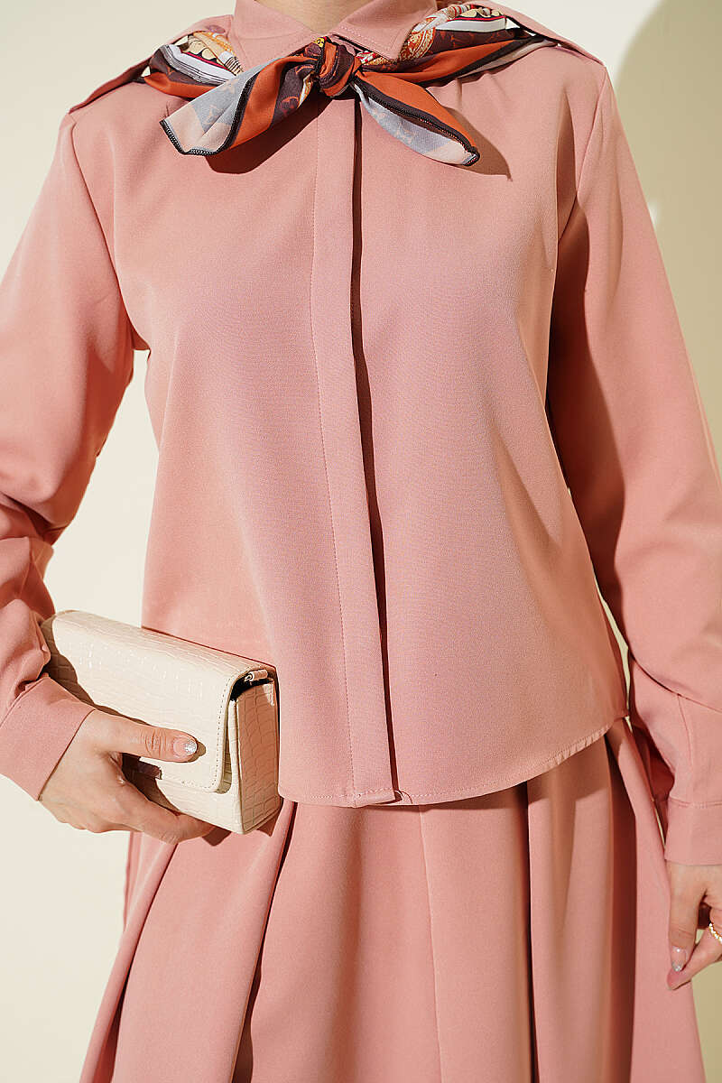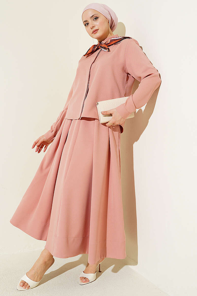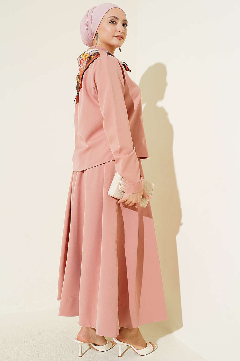 Omuz Apoletli Pileli Etekli İkili Takım Pudra