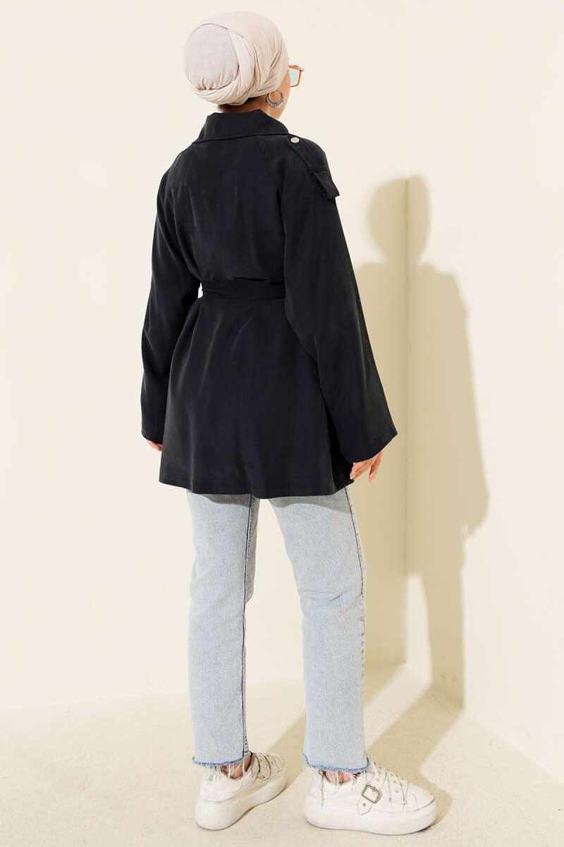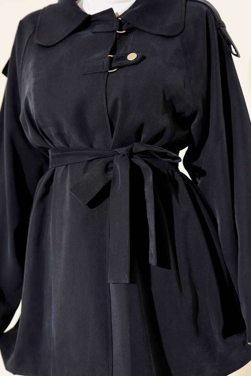Omuz Apoletli Tensel Trençkot Lacivert