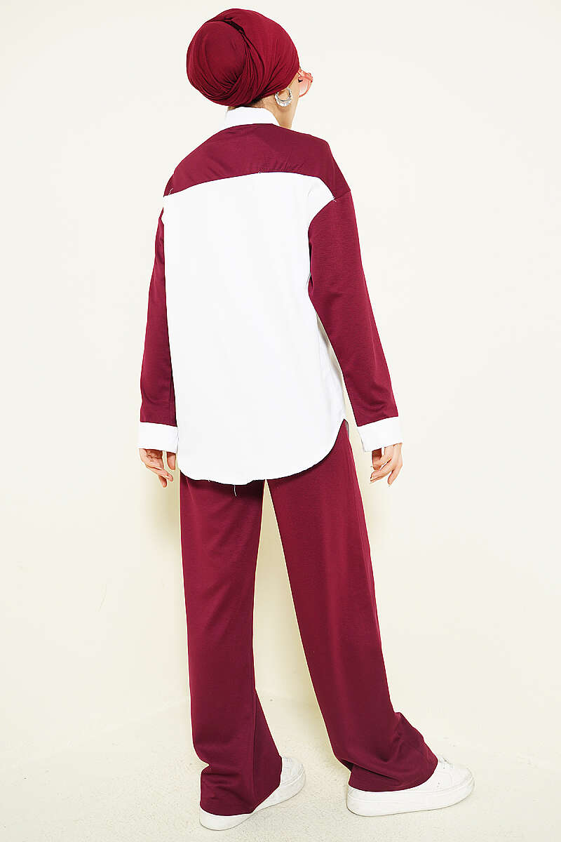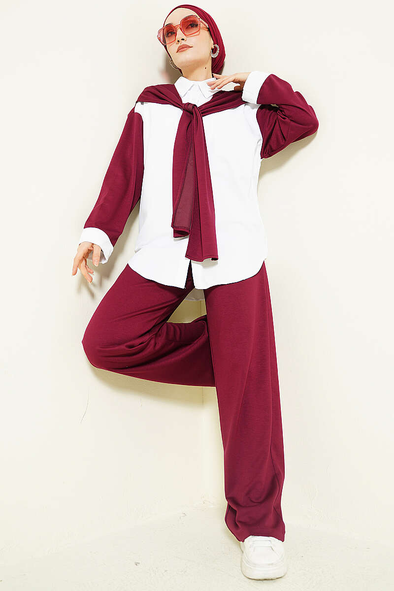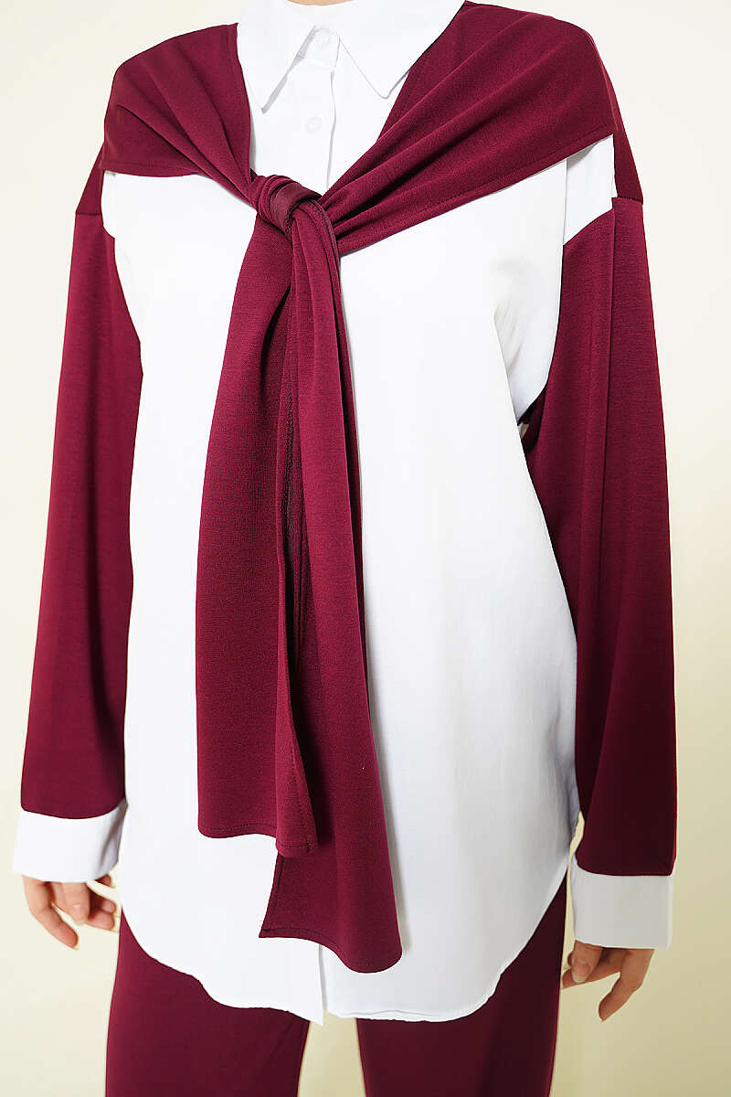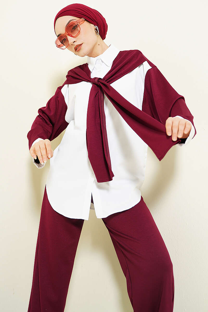 Omuz Atkı Detaylı Loyşa İkili Takım Bordo