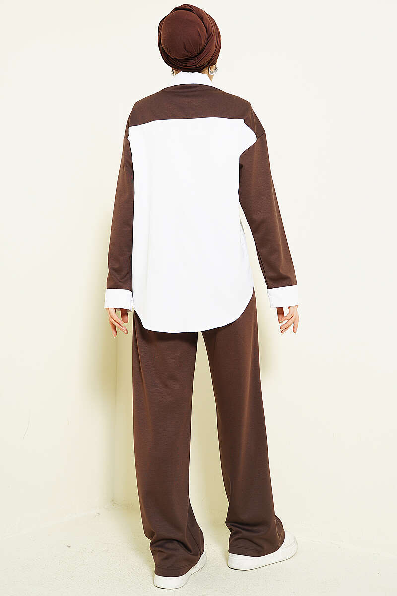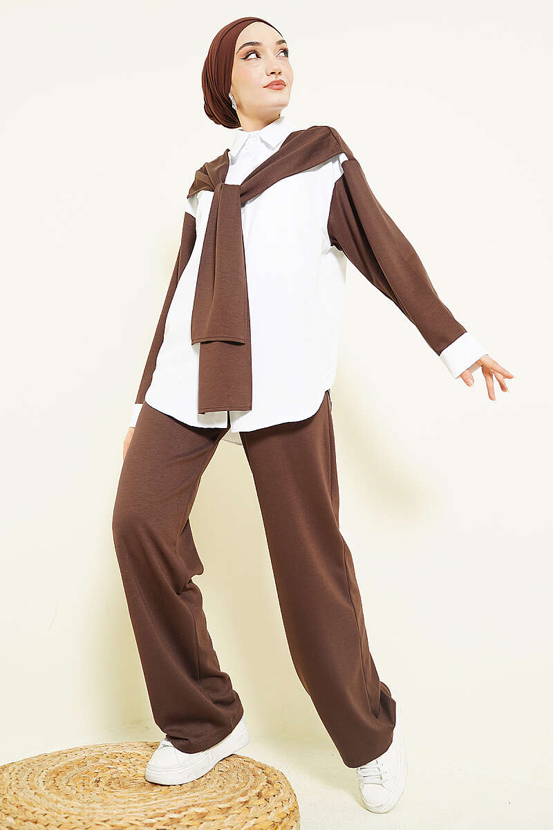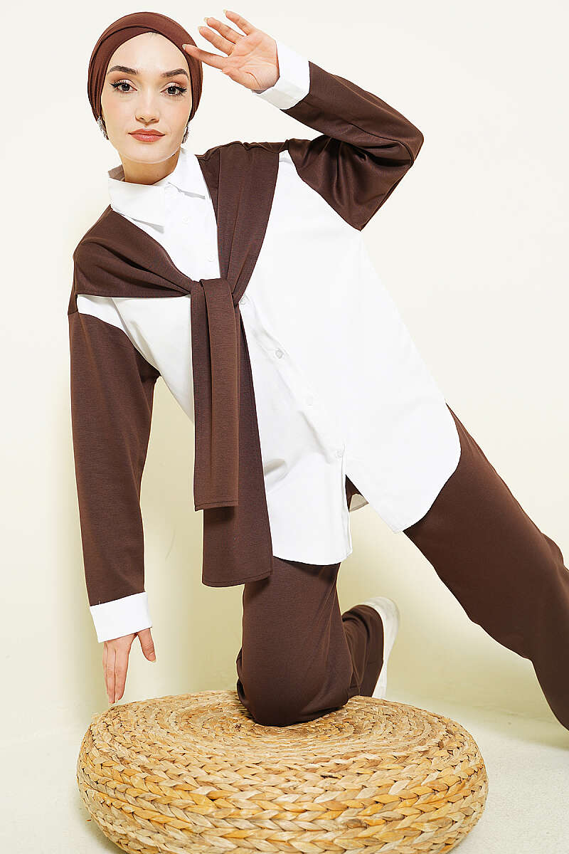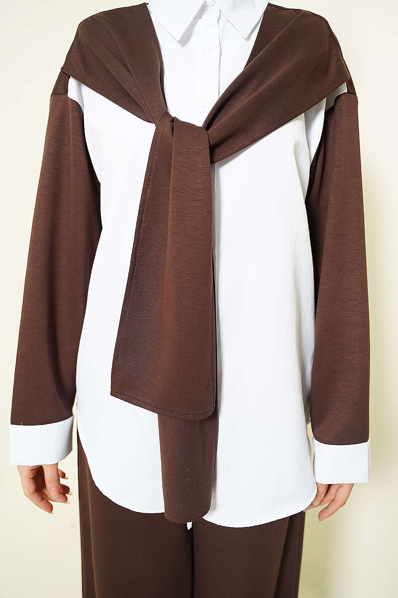 Omuz Atkı Detaylı Loyşa İkili Takım Kahve