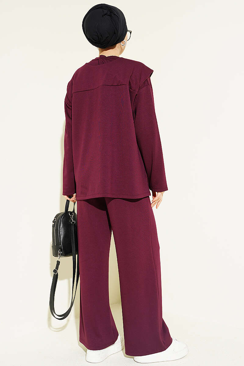 Loyşa Basic Fermuarlı Kapüşonlu İkili Takım Mürdüm
