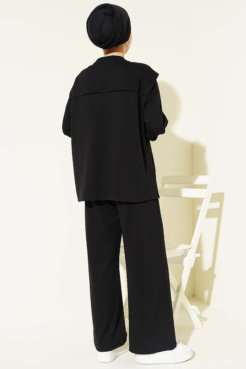 Loyşa Basic Fermuarlı Kapüşonlu İkili Takım Siyah
