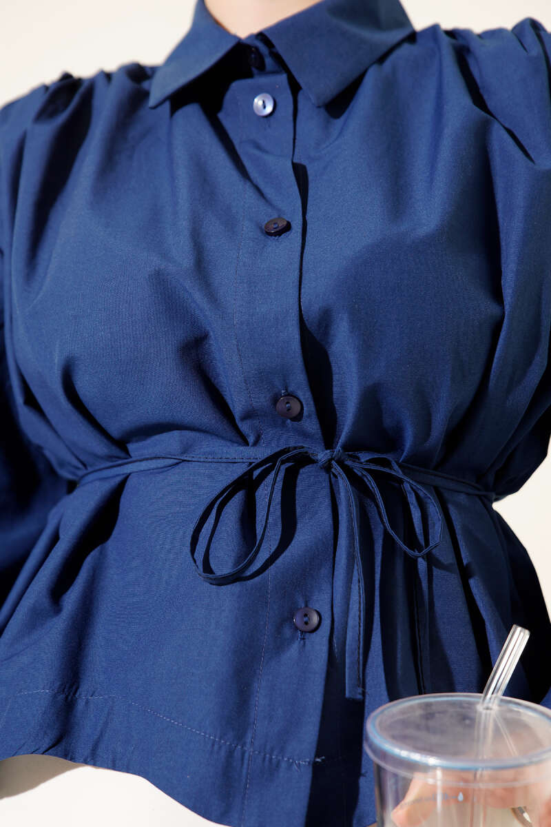 Omuz Büzgülü Kuşaklı Kısa Gömlek Nefti