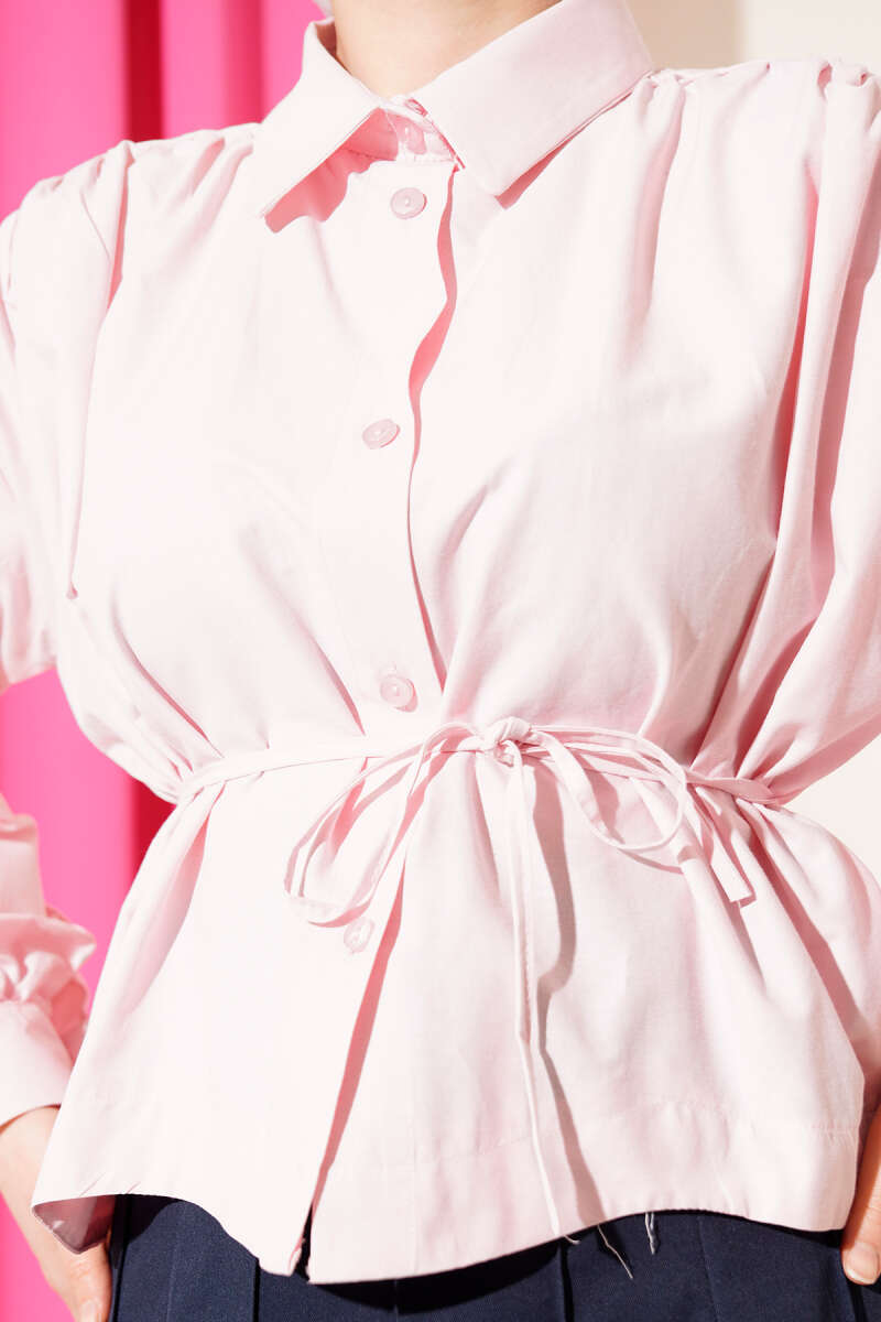 Omuz Büzgülü Kuşaklı Kısa Gömlek Nefti