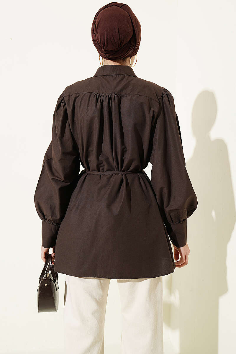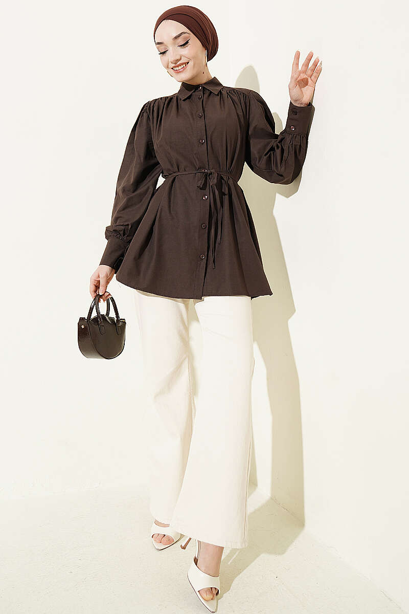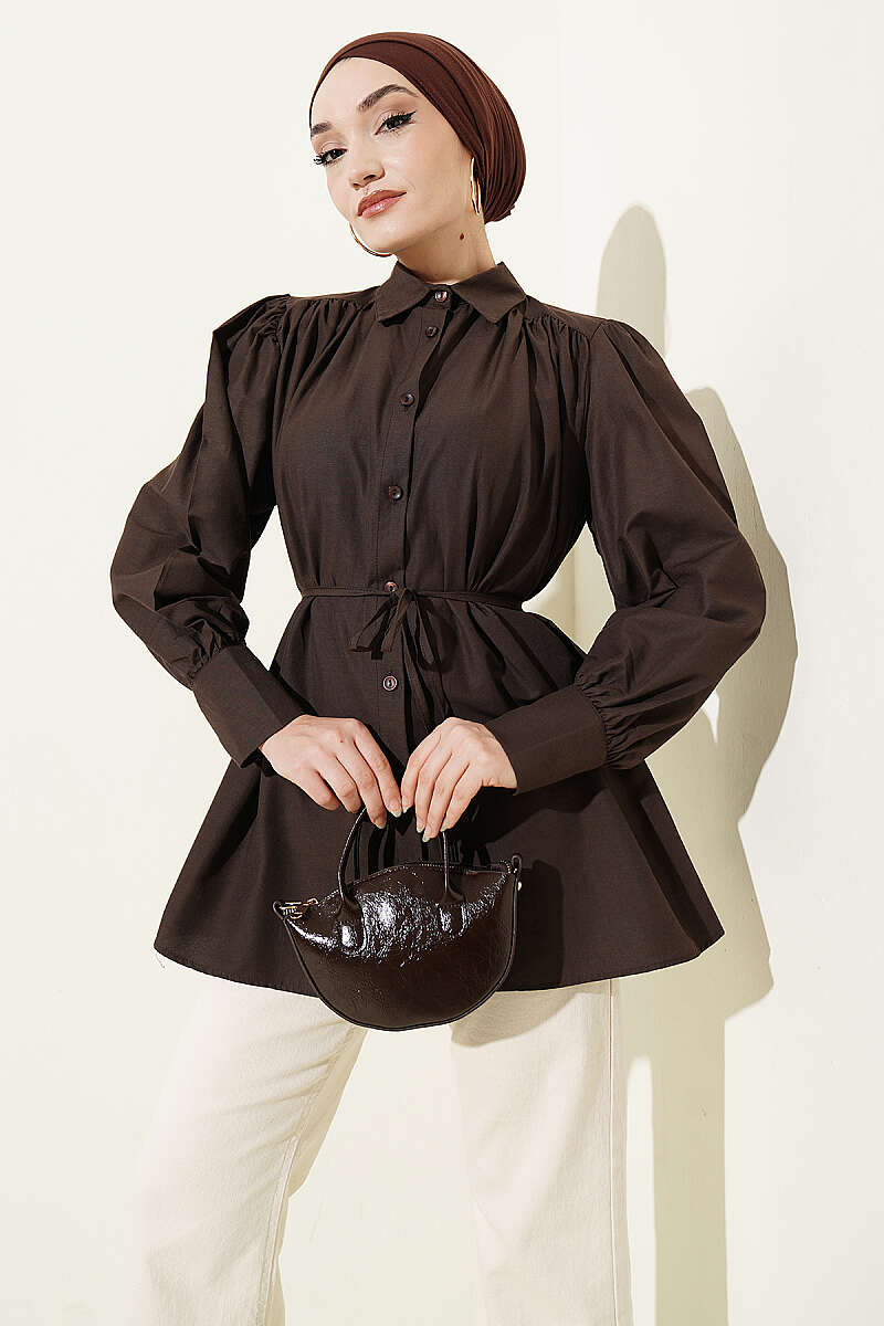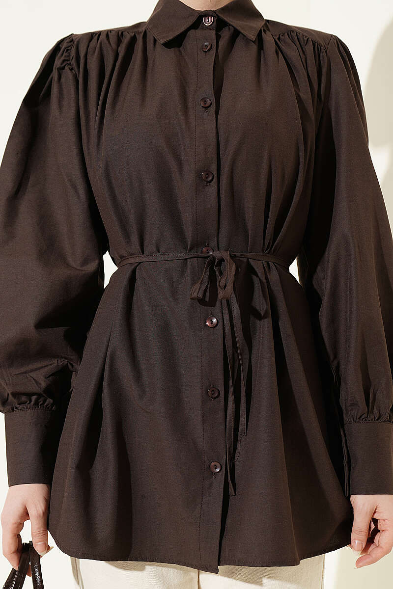 Omuz Büzgülü Kuşaklı Poplin Gömlek, omuz hattındaki modern büzgü detayları ve beli zarifçe vurgulayan ince kuşağıyla stilinize feminen bir hava katıyor. Kadın gömlek kategorisinin bu şık ve konforlu parçası; bordo, çağla yeşili, ekru ve siyah renk seçenekleriyle her mevsime ve her tarza hitap ediyor. Yüksek kaliteli poplin kumaşı ve balon kol yapısı sayesinde gün boyu rahatlık sunan bu gömlek, gardırobunuzun en sevilen parçalarından biri olmaya aday.