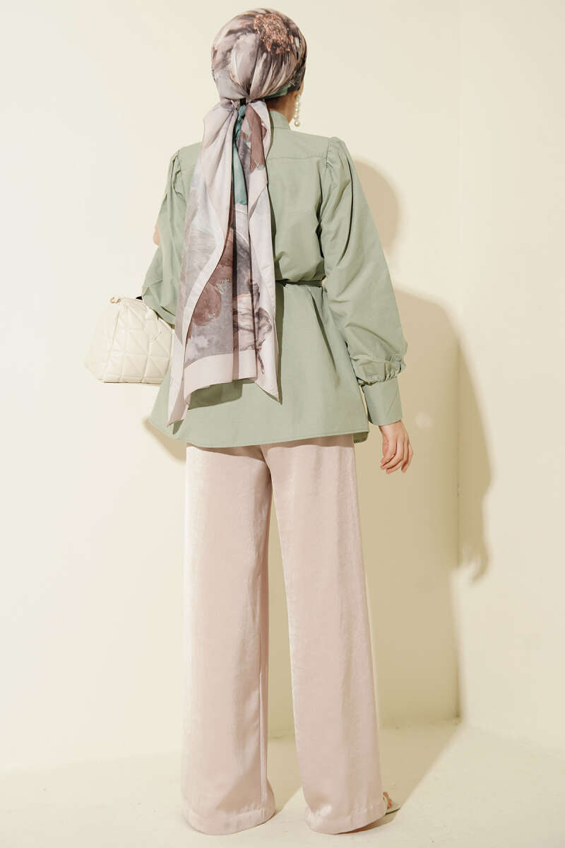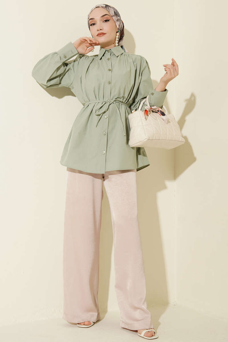 Bel Tünelli Büzgülü Kısa Gömlek Çağla Yeşili