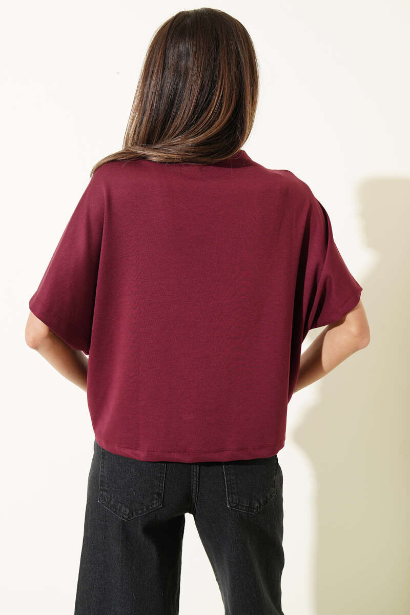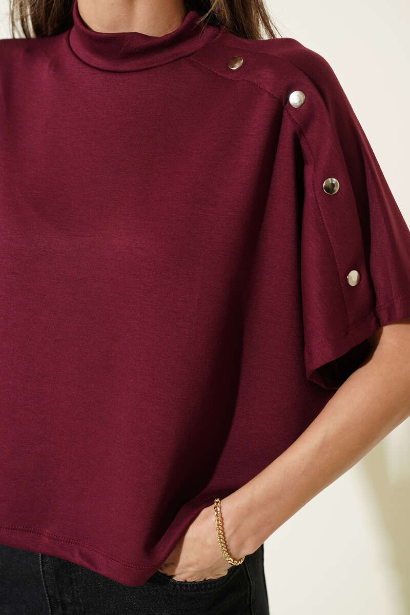 Omuz Detaylı T-shirt Bordo
